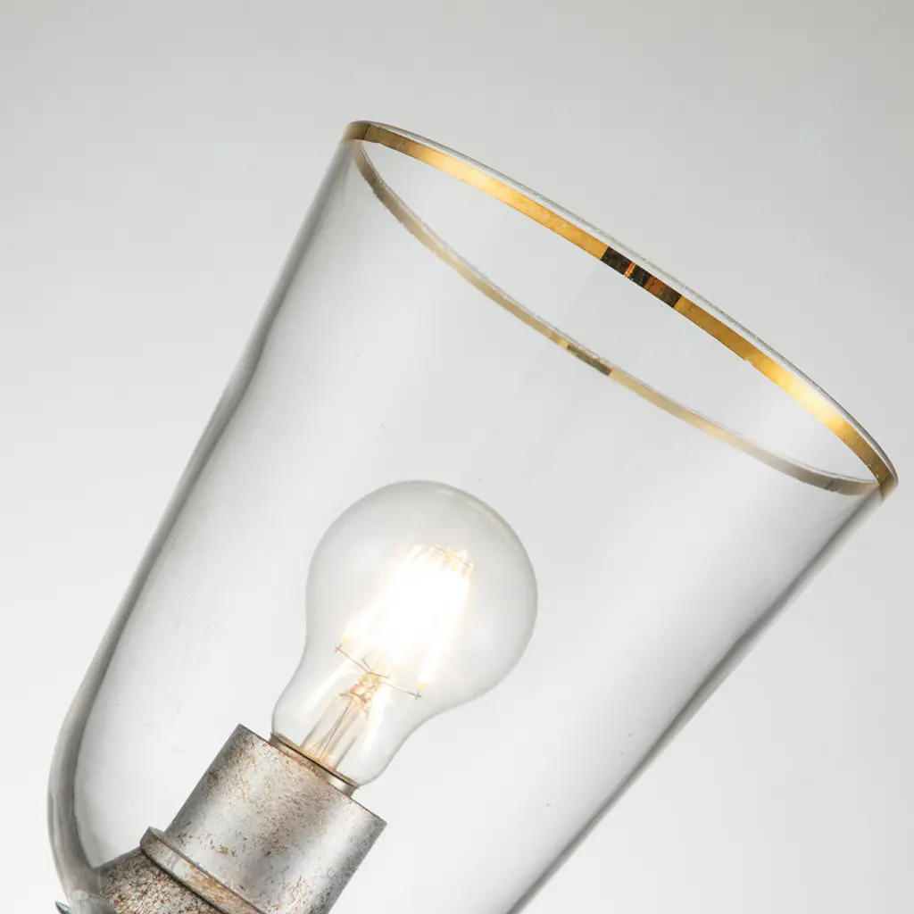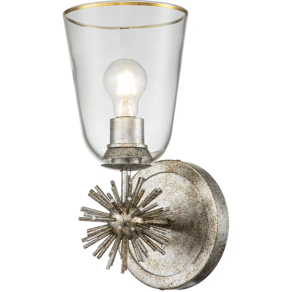 Geometric ball shaped pattern is the foundation of this unique sconce. Round back plate perfectly frames the element and the gold edged glass finalizes this sophisticated sconce