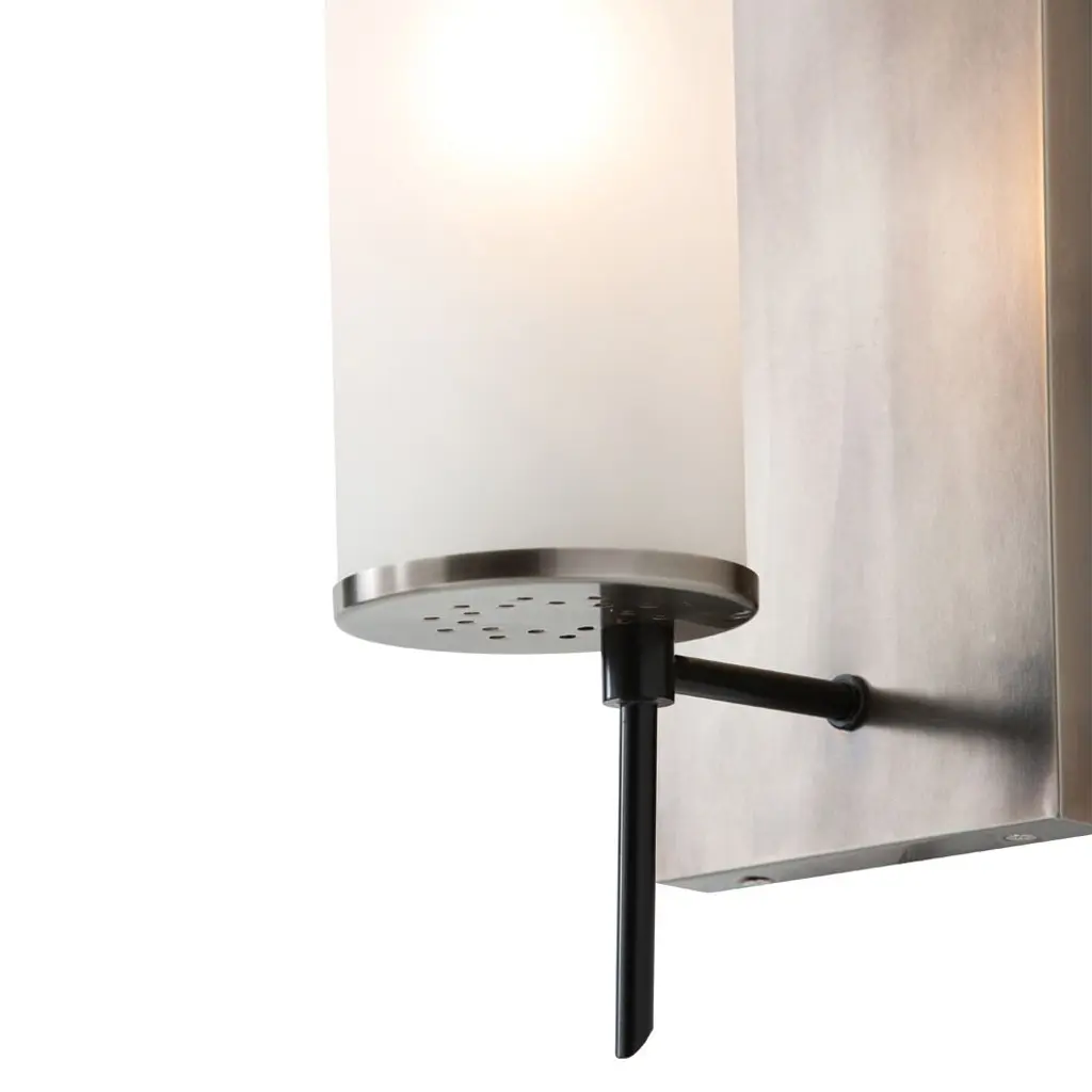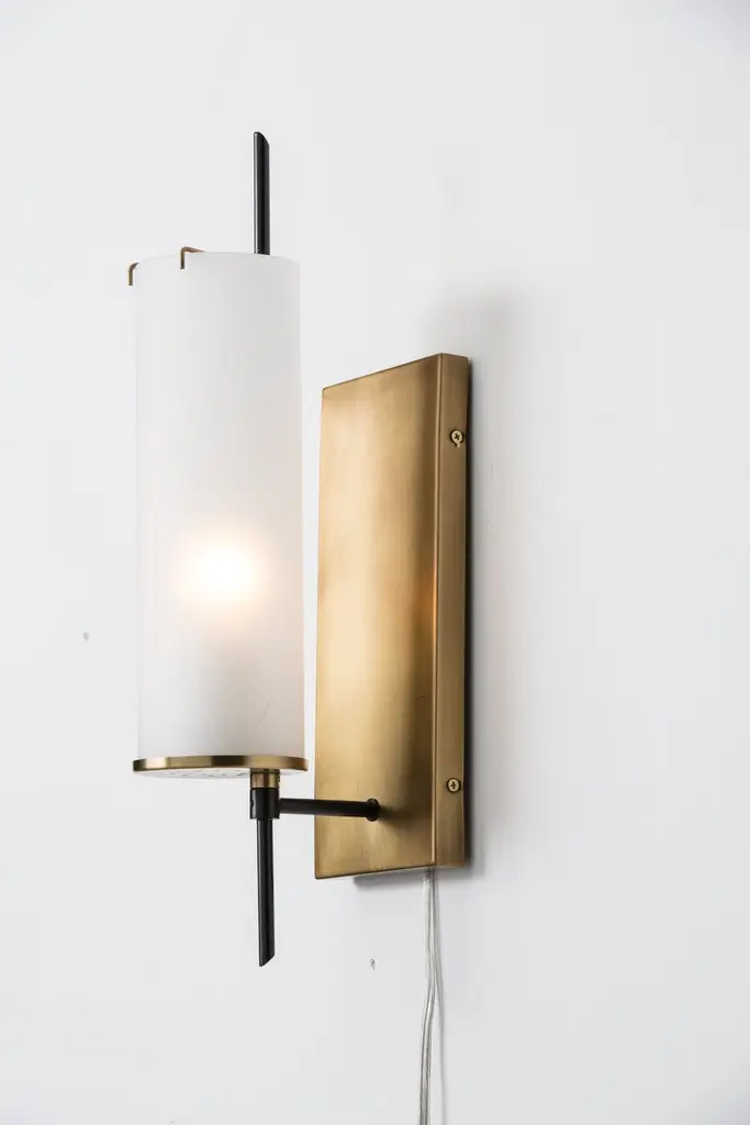Derived from the popular Stefan Floor Torchiere (79661) this one-light wall sconce combines bronze with frosted glass and antique brass accents to create a sophisticated and modern look. Consider pairs flanking a mirror in the hallway. Damp-rated although limited covered outdoor conditions may affect finish.