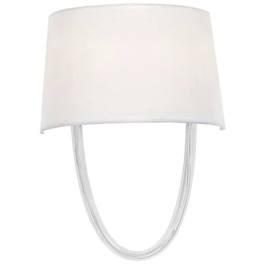 A unique study in simplicity. The Stella Wall Sconce by Crystorama is a clean and artful piece that brings personality to décor as it brightens. A curved fabric shade rests against the wall and conceals the fixture’s lamping. Below, an arching clear glass tube forms a U-shaped figure and houses a visible cord, lending a playful industrial element while remaining clean and simple. Its light is filtered over its surroundings, creating an elevated mood for the room.