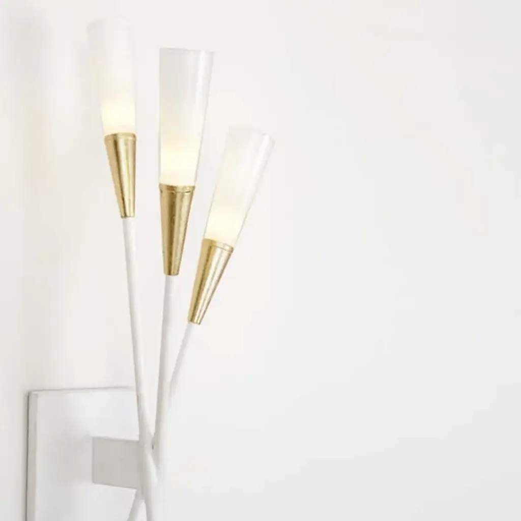 Stellar is just one of the many words describing the bouquet-like mid-century modern design of the Stellar LED Wall Sconce from Visual Comfort Signature, formerly known as Visual Comfort, Designers Chapman & Myers have conjured a graceful silhouette that almost floats visually along any mounted wall. Lovely metal stems are composed meticulously one on top of each other, to showcase their individual character. White acrylic shades, like slender flower petals, top the stems with a luscious, creamy hue. When turned on, LED light is captured as soft shapes radiating with ambient light.