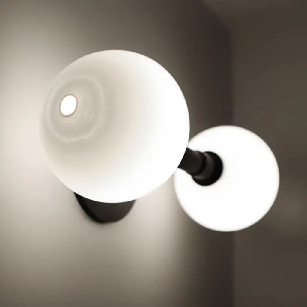 The Stem 2-Light Wall / Flushmount by SkLO is a masterful display of handblown Czech glass set within a minimalistic silhouette. A simple composition that honors honest materials and the craft that shapes them, this design from husband and wife duo Paul Pavlak and Karen Gilbert brings an artful layer of light to spaces. Each glass sphere is individually made and has a double-dipped, fire-polished mouth that is formed when the piece is broken away from the glassblower’s pipe when it is made – a signature that is unique to each glass diffuser produced. Connected by a brass arm and anchored by a round wall plate, this balanced composition can work as either a sconce or ceiling light.