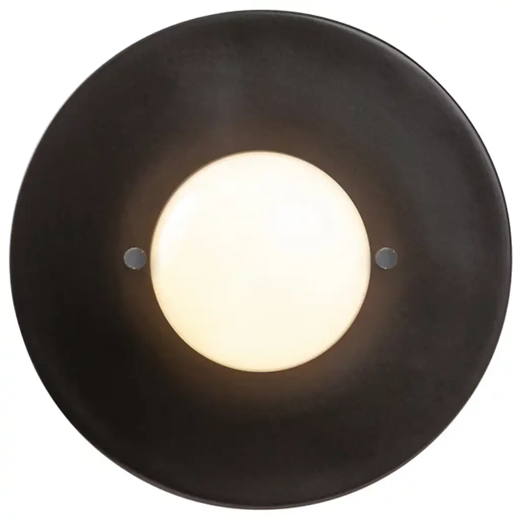 Expand your modern lighting possibilities with the Stepped Discus Wall Sconce by Justice Design Group. It has a clean, simple form made entirely out of handcrafted Ceramic. The stepped design includes a thin disc held just away from the wall by a narrower extension underneath. Use this modern wall sconce to both create a graphic look and bring warm ambient light to a dining room, living room or other interior space.