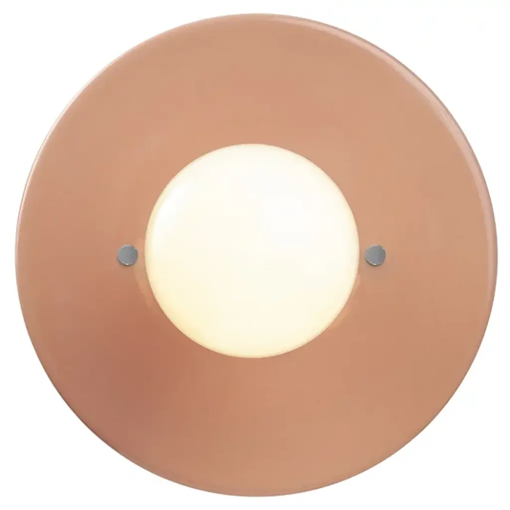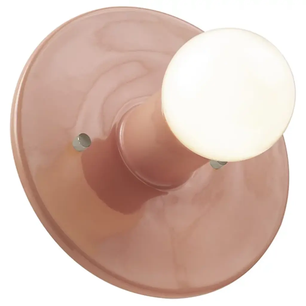 Expand your modern lighting possibilities with the Stepped Discus Wall Sconce by Justice Design Group. It has a clean, simple form made entirely out of handcrafted Ceramic. The stepped design includes a thin disc held just away from the wall by a narrower extension underneath. Use this modern wall sconce to both create a graphic look and bring warm ambient light to a dining room, living room or other interior space.