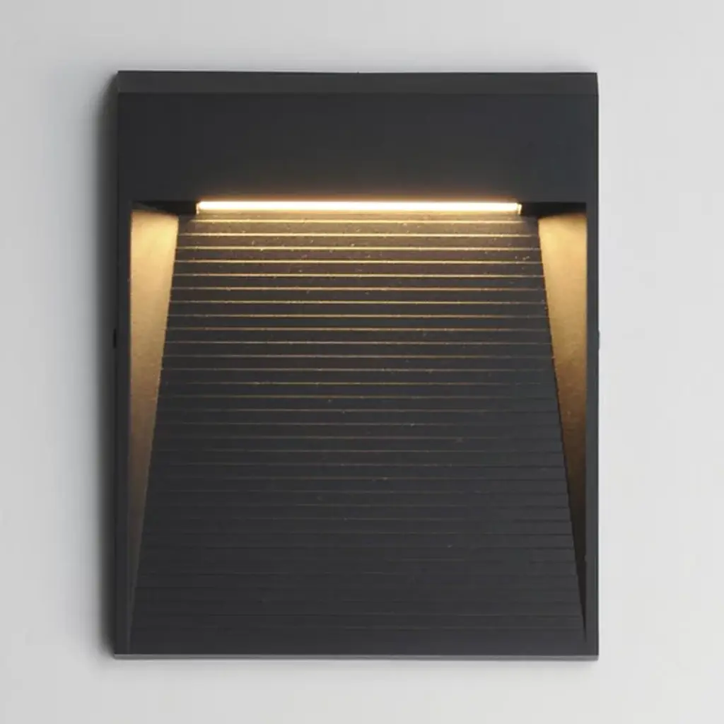 The Steppes LED Outdoor Wall Sconce from ET2 Lighting employs precisely stacked bevels in a linear arrangement reminiscent of urban skylines. Each horizontal ridge catches and redirects light, creating rhythmic patterns across its surface. The downward-facing LED source remains hidden while illuminating walkways and outdoor spaces with purpose. Horizontal lines dominate the composition, bringing order and structure to exterior walls. This sconce bridges past and present with its nod to architectural history while employing modern LED technology.