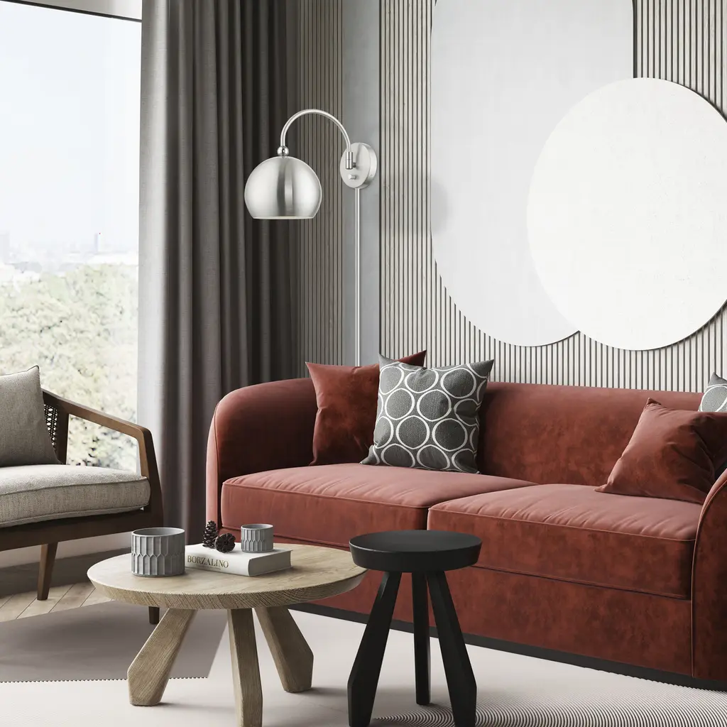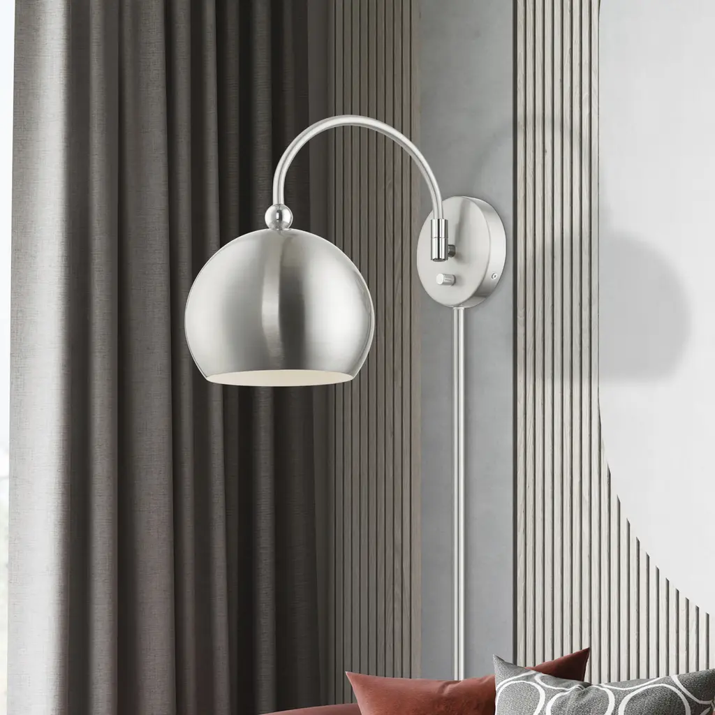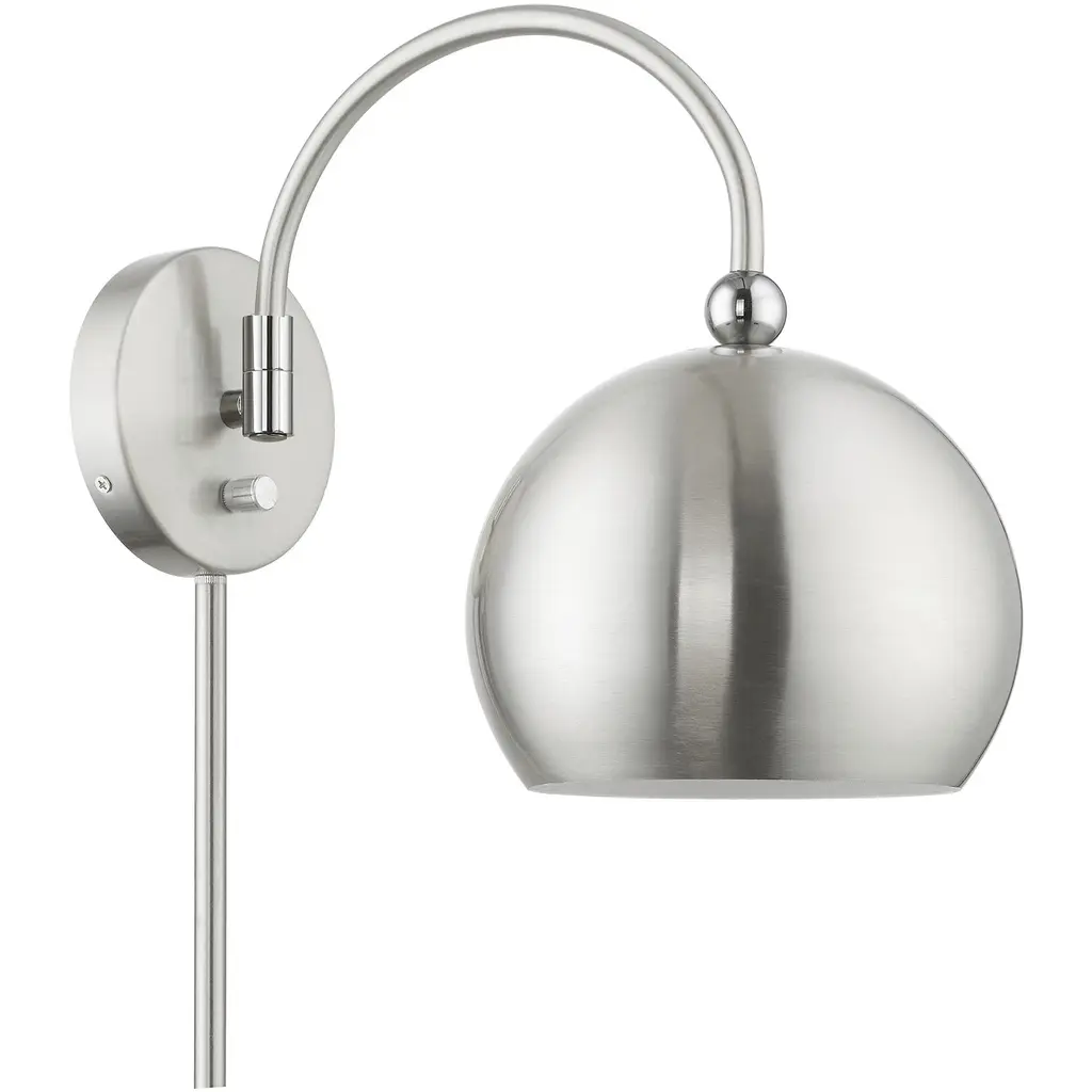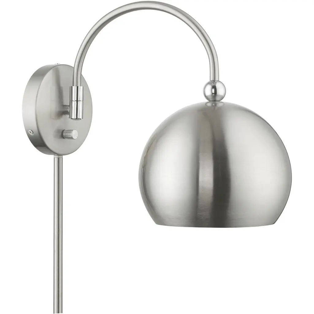 1 Light Brushed Nickel with Polished Chrome Accents Swing Arm Wall Lamp