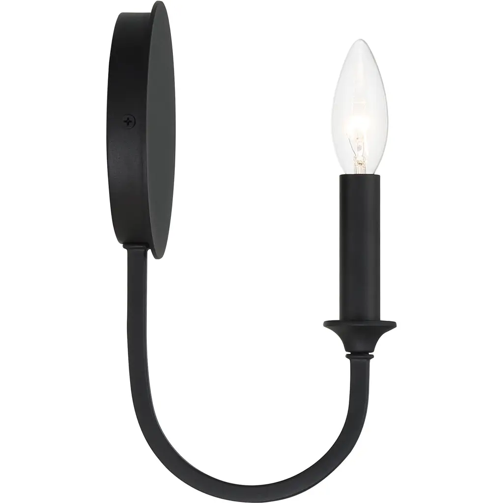 This collection embodies a sleek and modern silhouette. A circular wall plate supports a single swooping arm design. Its clean lines and an unadorned style brings a timeless appeal to any interior space.