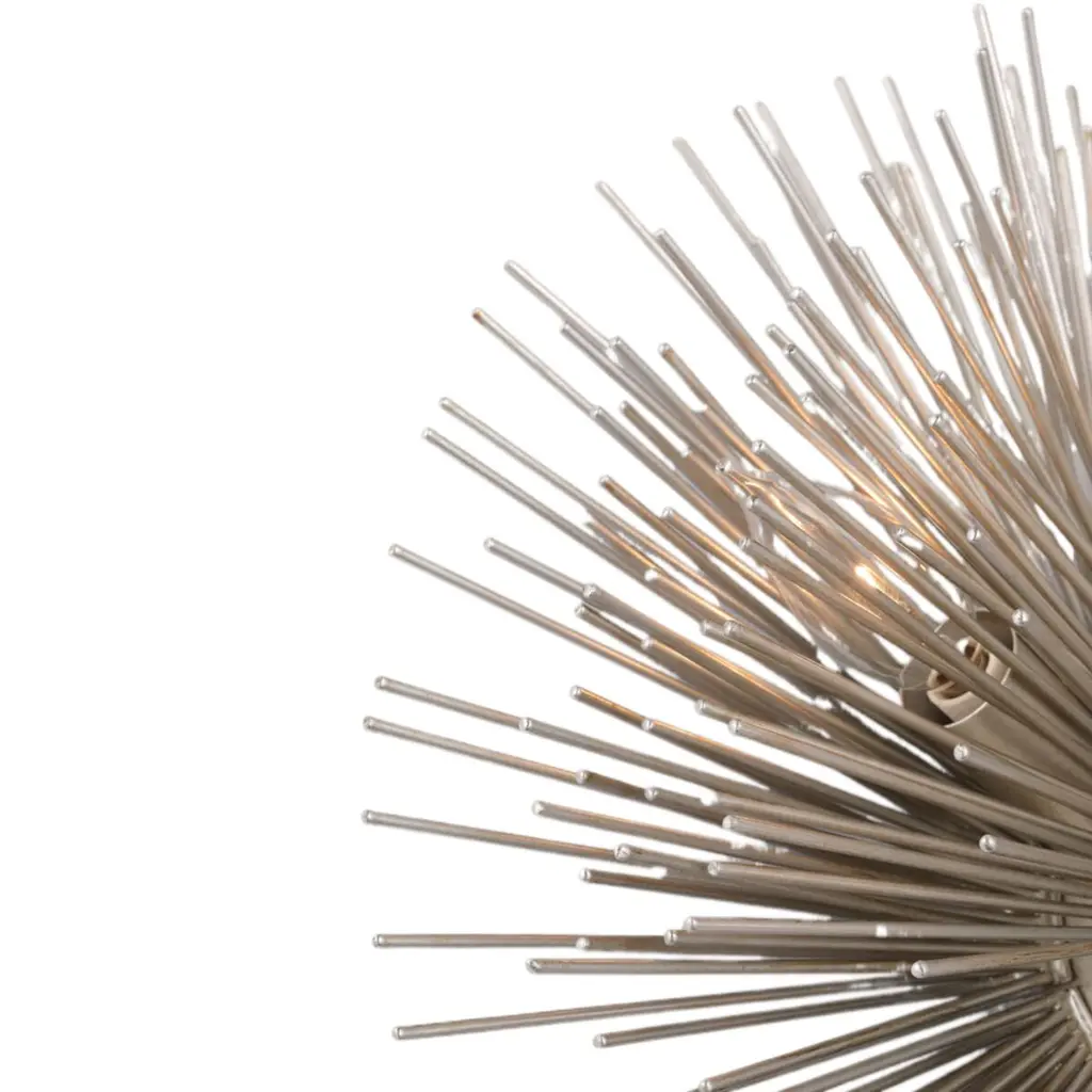 Paying homage to vibrant organic forms and sleek metal, the Strada series features delicate sculptures of radiating quills that cast a striated glow across ceilings and walls. With flush mounts, chandeliers, and sconces, the array of designs create delicate volume that adds a unique, dynamic touch to interior spaces. The Strada Flush Mounts, available in various sizes, offer a sophisticated and artistic lighting solution that enhances the ambiance of any room.