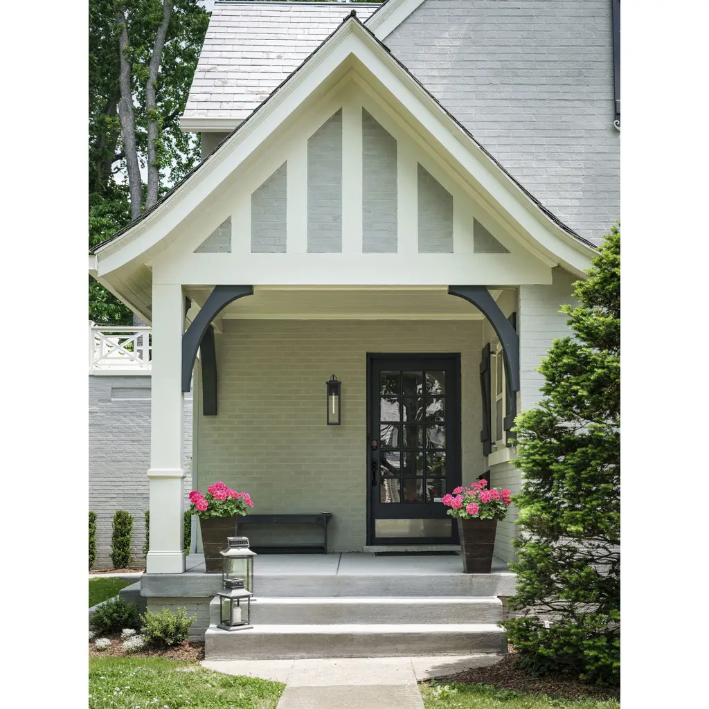 A collection that boasts clear glass panels and a sleek black metal frame, merging classic charm with contemporary flair. The elongated lantern design, features a flat geometric arm attached to a rectangular top, adding a captivating visual dimension. A standout feature is the adaptable candle sleeves, arriving in both white and gold finishes for personalized style. Elevate your outdoor space with timeless beauty, leaving a lasting impression on visitors.