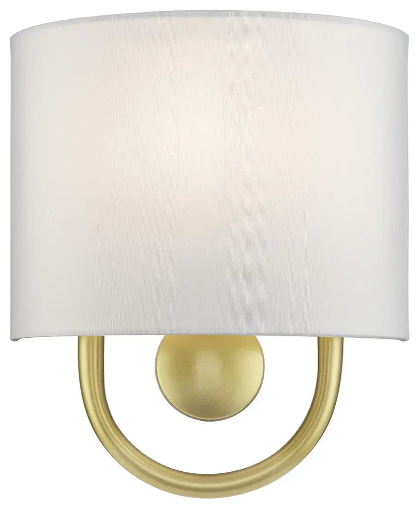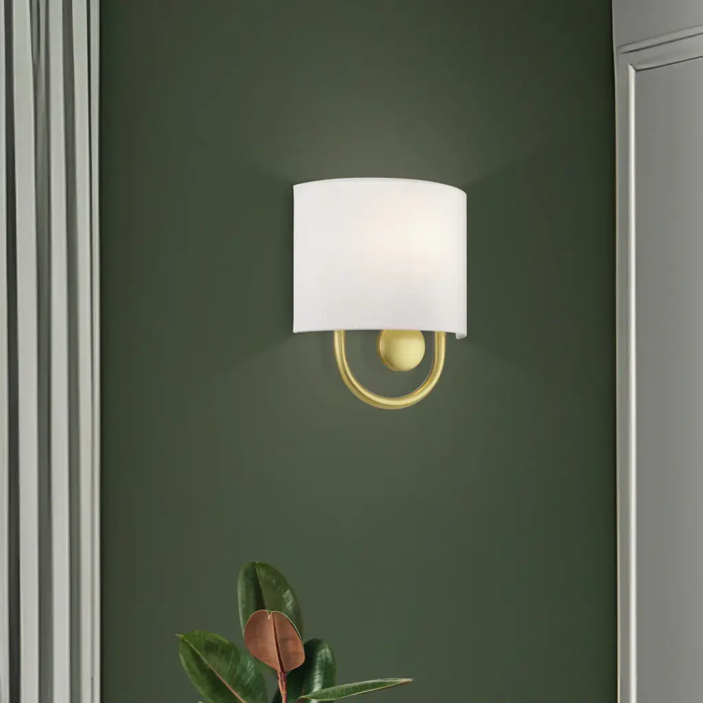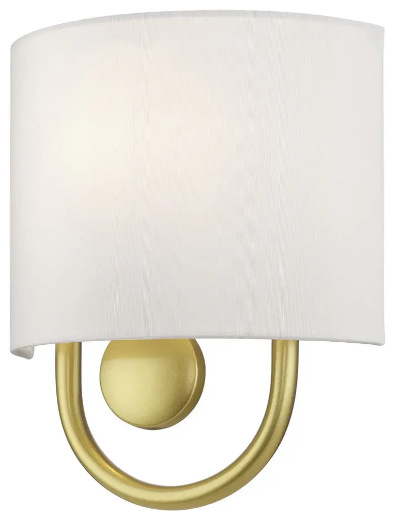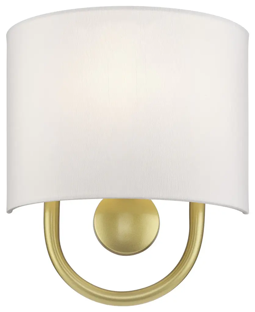 Stratton 1 Light Soft Gold Ada Sconce With Hand Crafted Off-White Fabric Shade