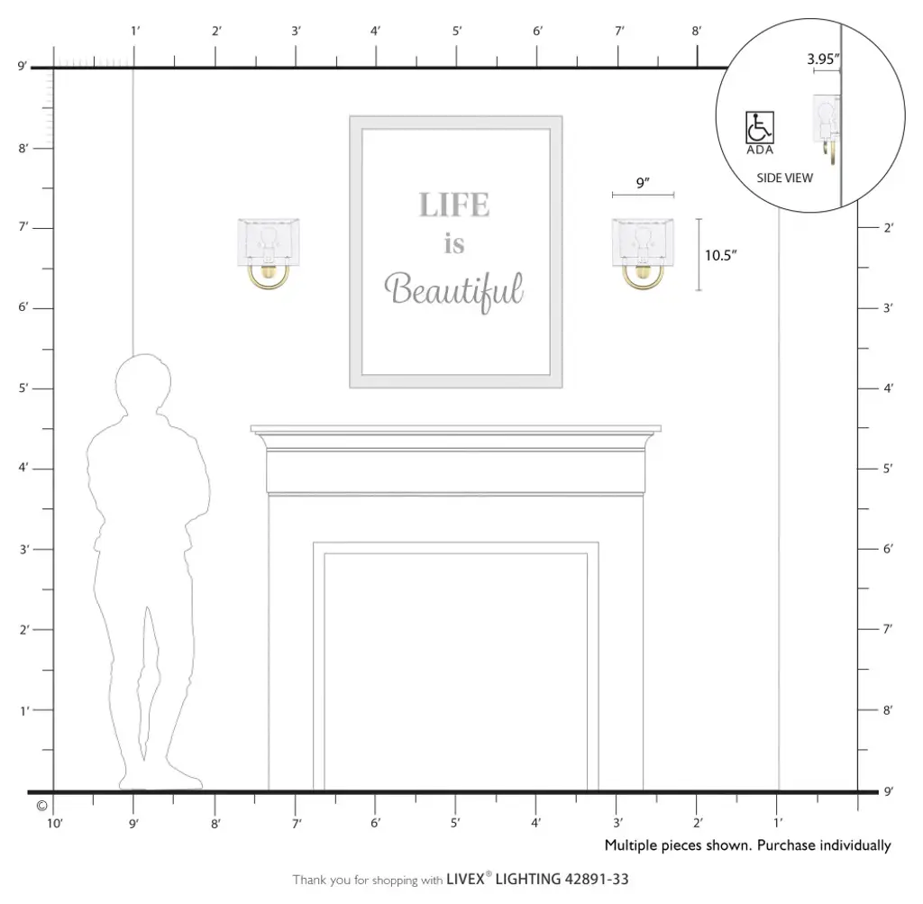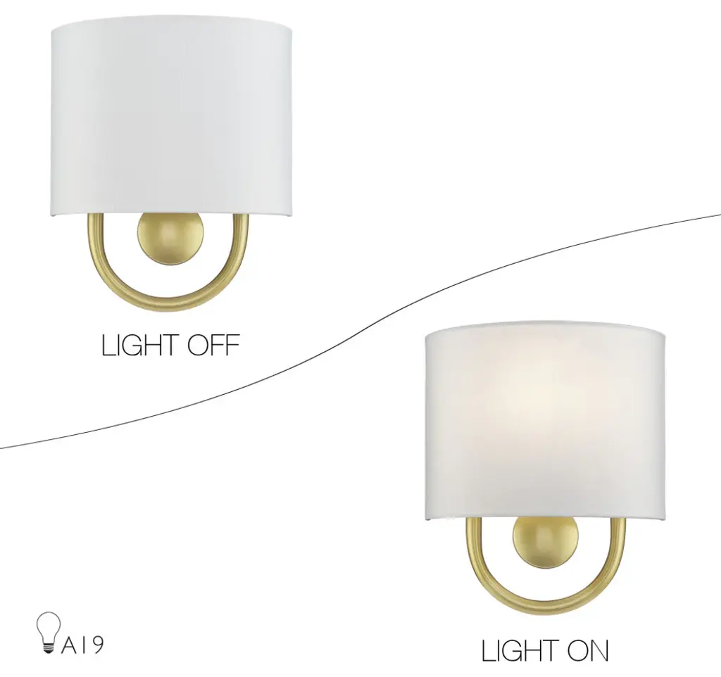 1 Light Soft Gold ADA Sconce with Hand Crafted Off-White Fabric ShadeNumber of Bulb(s): 1Type of Bulb(s): Medium BaseBulb Wattage: 40Bulb(s) Included: N