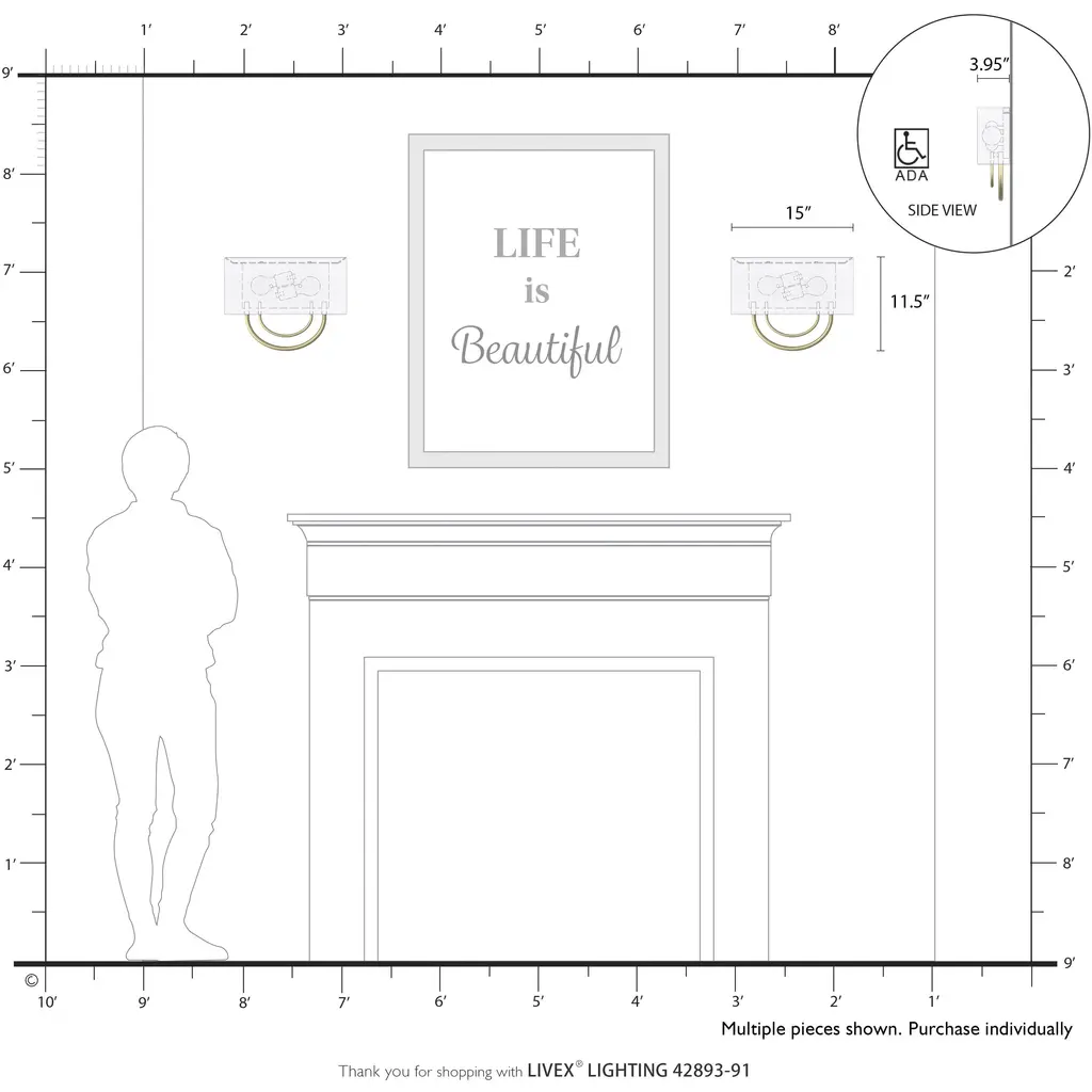 Stratton 2 Light 15 Inch Brushed Nickel Ada Wall Sconce Wall Light