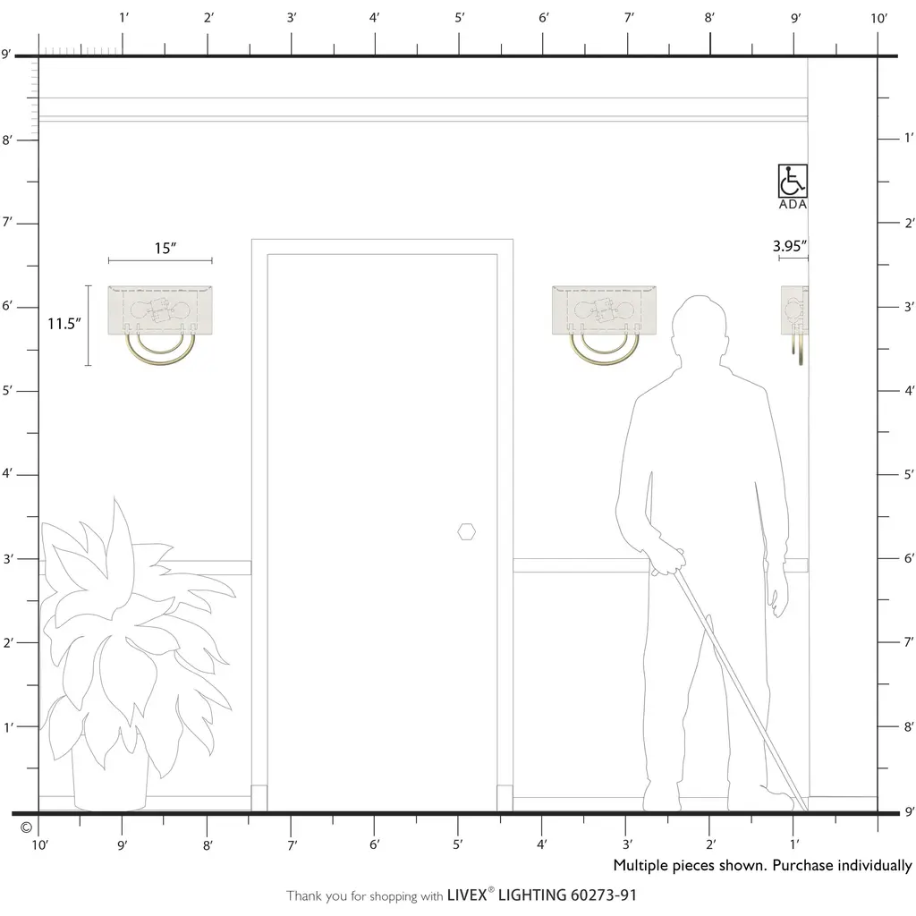 Stratton 2 Light 15 Inch Brushed Nickel Ada Wall Sconce Wall Light