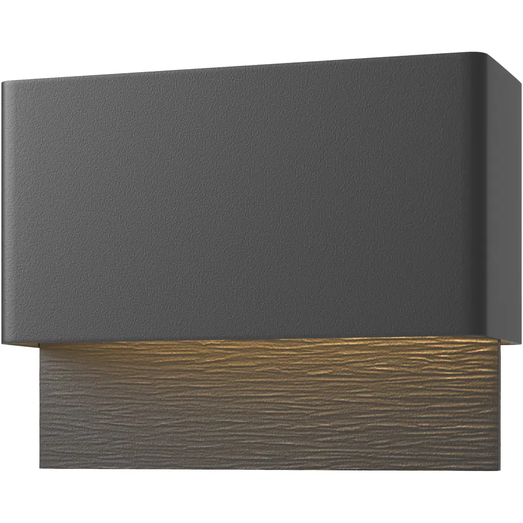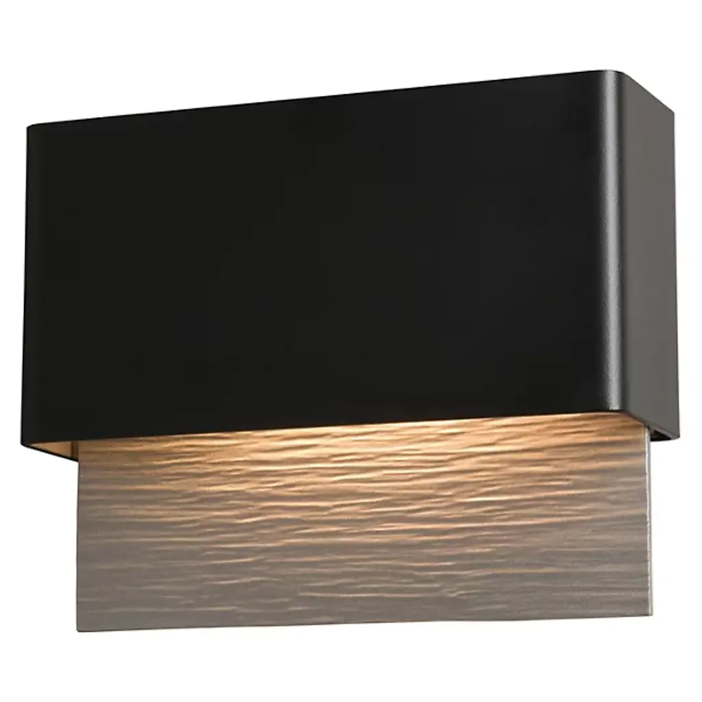 The Stratum Dark Sky Friendly Outdoor Sconce features a beautifully textured backplate ,with a two-tone finish option, that guides the light downward from the LED illumination, hidden within the header element. Stylish and elegant with an eye toward reducing nighttime light pollution, this dark sky friendly sconce will enhance any exterior.