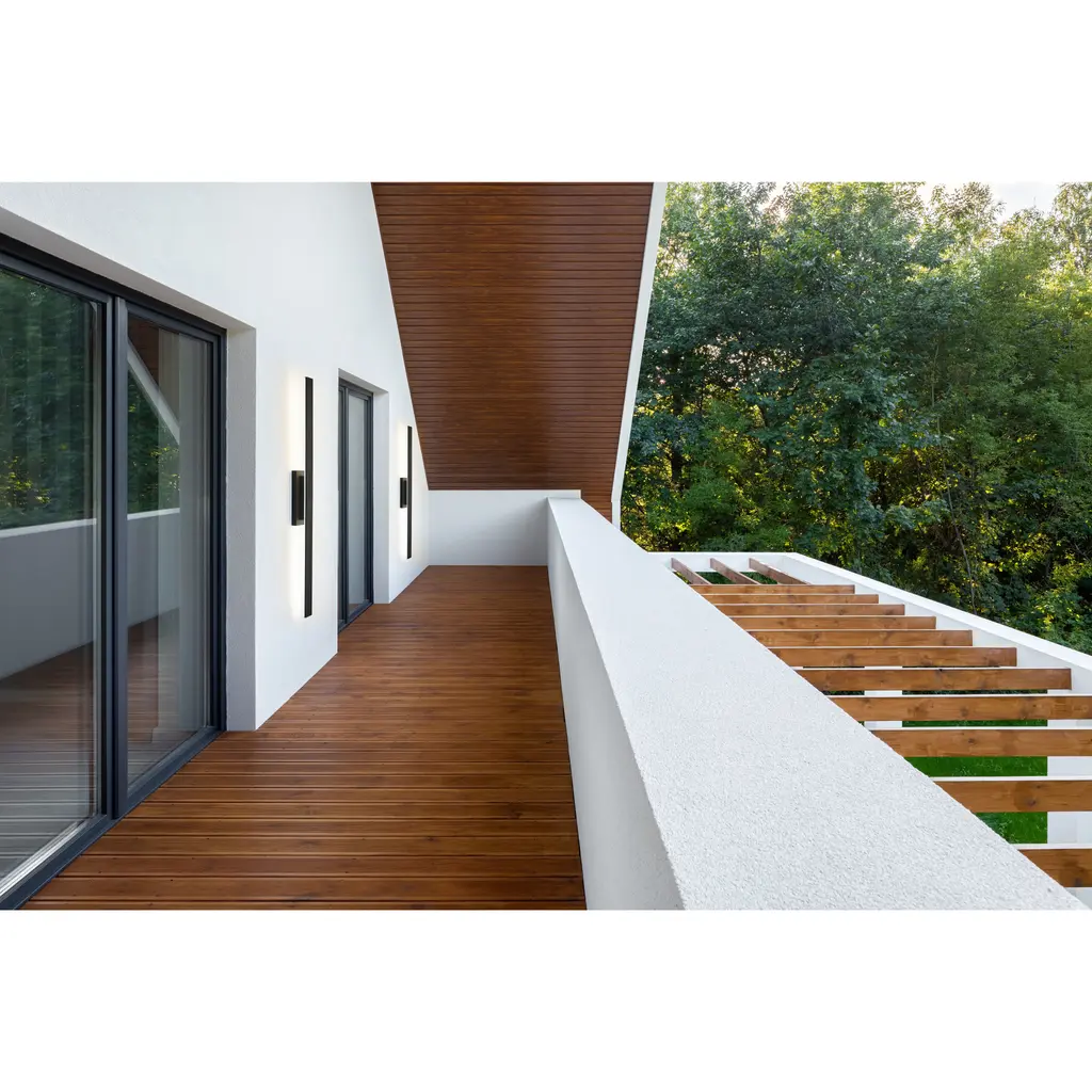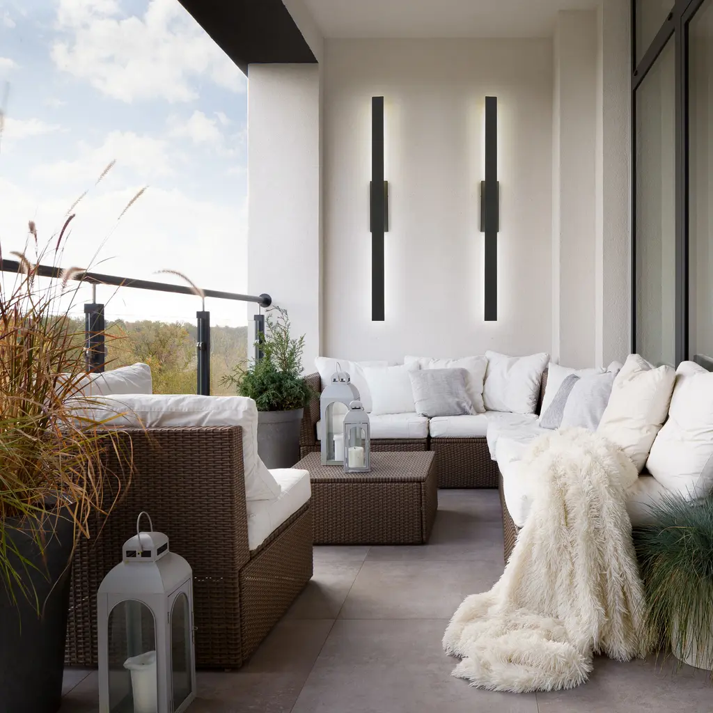 Impressive size meets a glowing ambiance of a wash of light in this modern four-light outdoor wall light. Its facing receives a textured, marine-grade sand black finish to highlight a sleek, slim silhouette complete with sharp corners and clean lines. From behind, light glows from energy efficient LEDs through a white diffuser for the perfect lighting in every setting. This fixture offers selectable color temperature with five options ranging from 2700K to 5000K for the perfect ambiance.