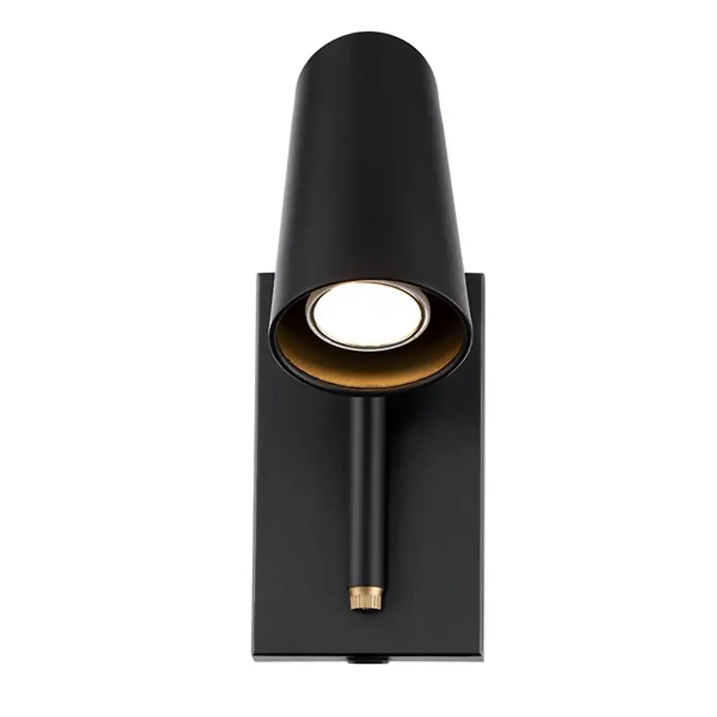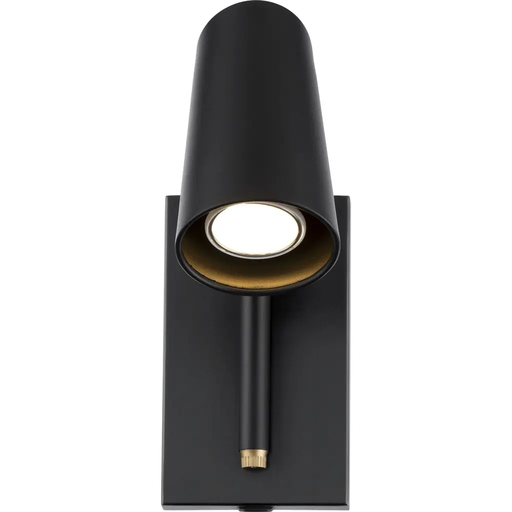 The Stylus LED Reading Light Wall Sconce from Modern Forms combines unique contemporary elements into a striking, functional silhouette. A knurled rotary switch integrates into the sleek, damp-listed steel arm, with focused illumination escaping through the glass shade set inside the gold and black housing. The sconce celebrates engineering in decor, aided by an integrated USB port. Install this artful reading light to illuminate bedrooms and niches with a focused, adjustable ambiance and recognizable style.