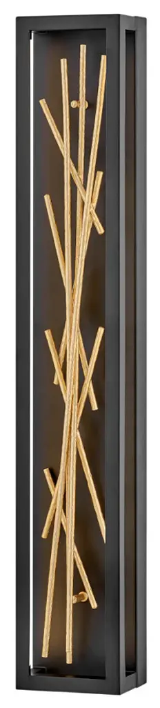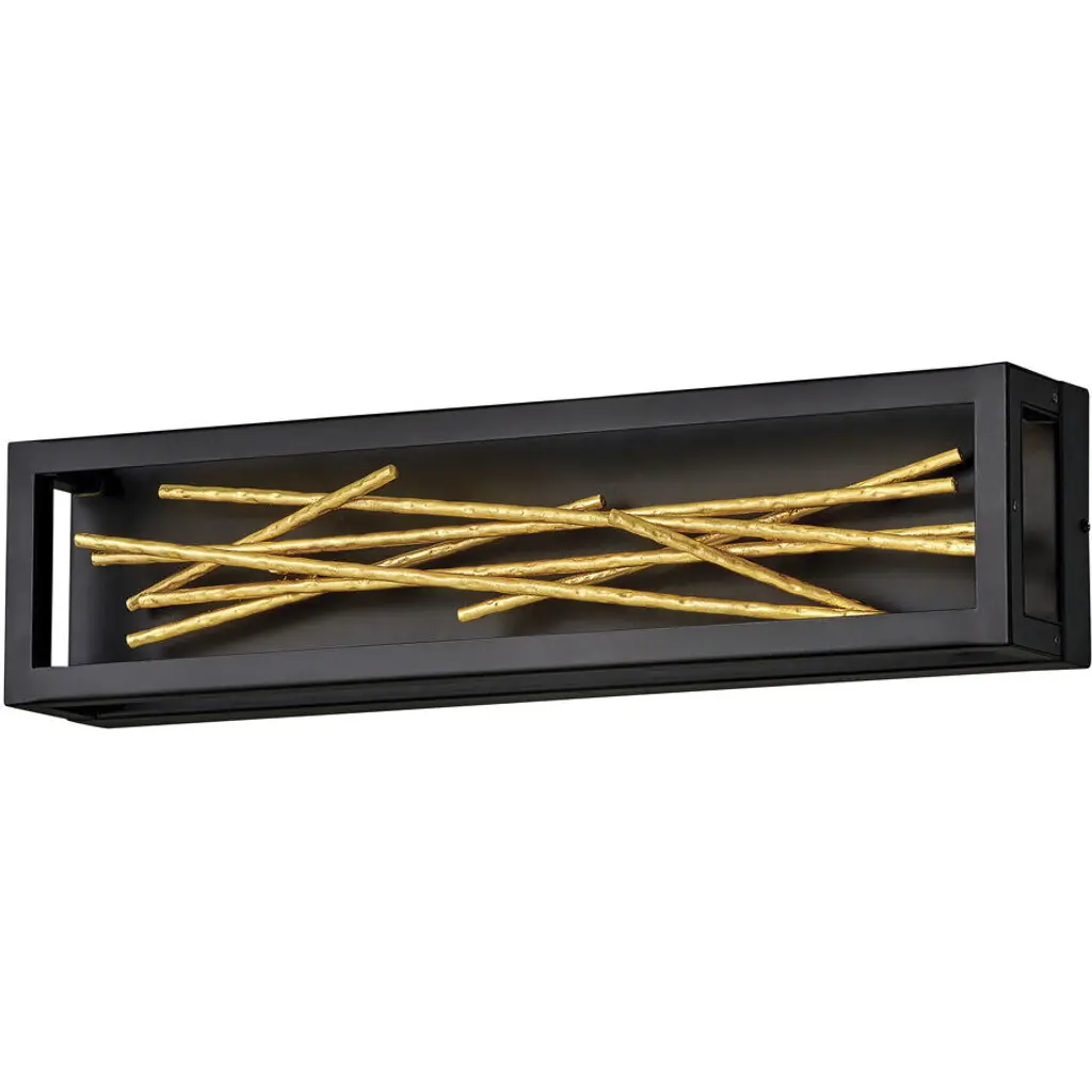 The breathtaking design of Styx fuses rich glamour with modern styling for an enthralling and dynamic silhouette with unexpected elements. An integrated LED open frame is fully dimmable, composed of clean angles in a chic Black finish. The frame illuminates textured metal branches in Gilded Gold, mingling organic and contemporary elements.