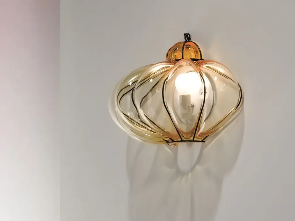 Murano glass wall lamp.The particular form and simplicity of the beams originate a classic shape characterized by a timeless style, finding a perfect placement in contemporary settings.