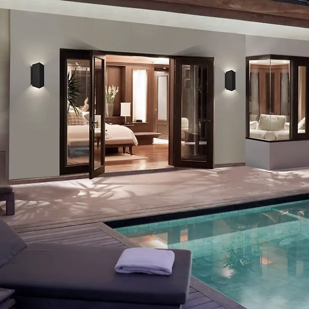 The Summit LED Outdoor Wall Sconce from dweLED complements the perpendicular angles of modern architecture with an envelope of soft, dramatic light. This edgy piece seamlessly slots inside an entryway, façade, or across a walkway. The geometric structure creates intrigue by concealing the light source. A touch of light reveals the structure's elegant envelope-like silhouette. Brilliant LEDs funnel through the sconce's 2 openings, fanning a rich cast light against the wall. This indirect light is easy on the eyes no matter the viewing angle.
