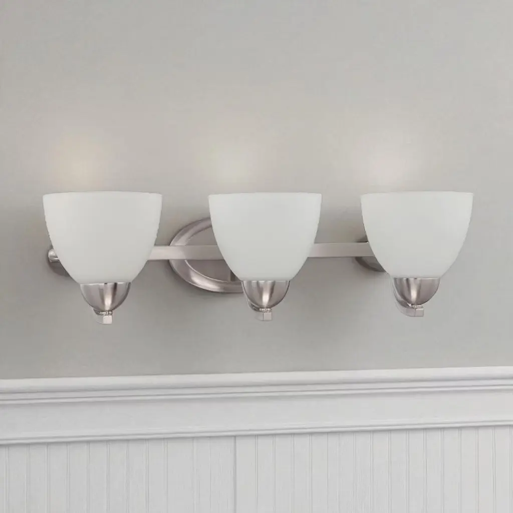 Sunset Lighting Preston 3-light Wall Sconce 100w Opal Etched Glass, Bright Satin Nickel Finish