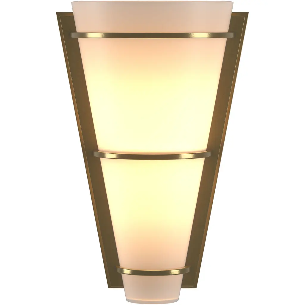 The glass is the focus of our Cone Sconce. Three strips of hand-shaped steel clasp the cone. With the combination of the V-shape of glass and mounting plate and the three bands, the shape of cast light looks fantastic.
