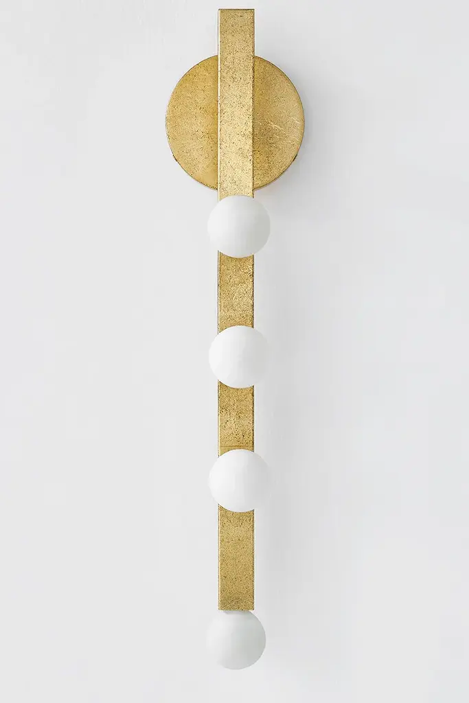 Merging modern simplicity with decorative flair, Sutter plays with parallels. Glass orbs are arranged with thoughtful asymmetries to create balance along a slender frame. Like a Mondrian painting, lines merge and intersect && except when they don't. Available as a sconce or chandelier in either a warm Vintage Gold Leaf or industrial Graphite finish. Part of THELIFESTYLEDCO® collection.