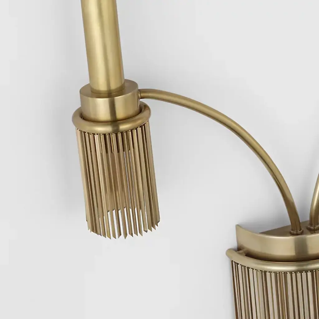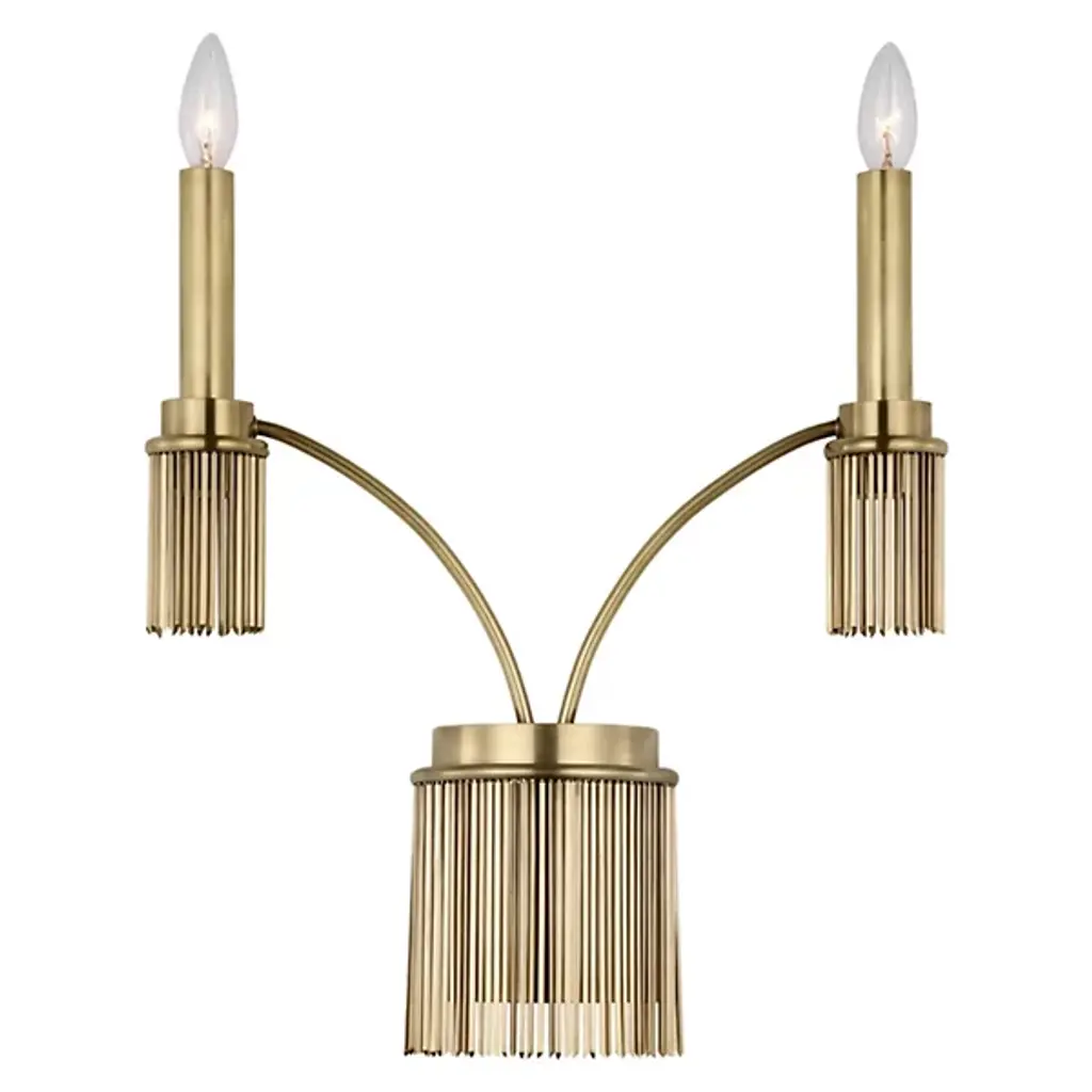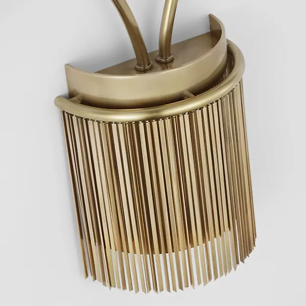 The Sutton Double Wall Sconce from Visual Comfort Signature doubles the drama of wall lighting with its symmetric design. The Fisher Weisman team has created an architectural statement piece with candle-style lights emerging from gracefully curved arms that intersect above a central fringe-adorned base. The brass rods cascade downward like a waterfall of metal, creating movement and capturing light. Each light source appears to float independently while remaining part of a cohesive composition. This sconce works exceptionally well flanking mirrors, artwork, or as standalone sculptural elements in spaces that deserve lighting with presence and personality.