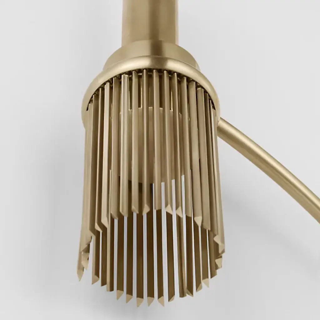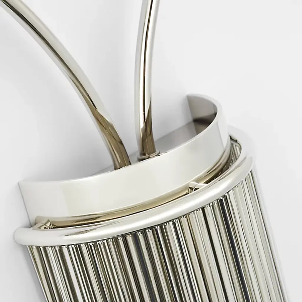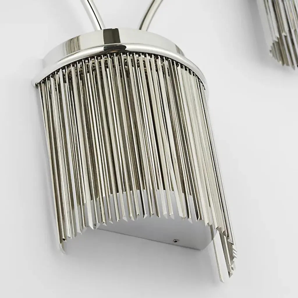 The Sutton Double Wall Sconce from Visual Comfort Signature doubles the drama of wall lighting with its symmetric design. The Fisher Weisman team has created an architectural statement piece with candle-style lights emerging from gracefully curved arms that intersect above a central fringe-adorned base. The brass rods cascade downward like a waterfall of metal, creating movement and capturing light. Each light source appears to float independently while remaining part of a cohesive composition. This sconce works exceptionally well flanking mirrors, artwork, or as standalone sculptural elements in spaces that deserve lighting with presence and personality.