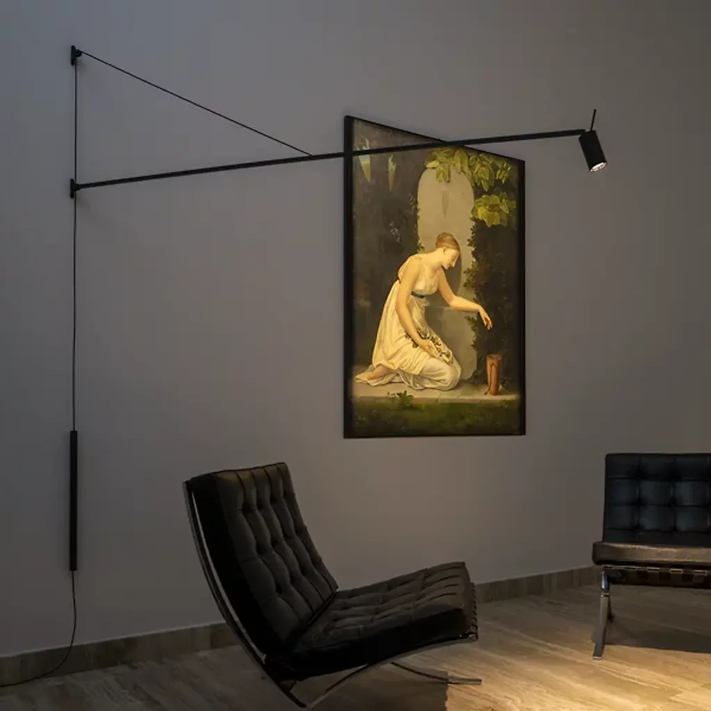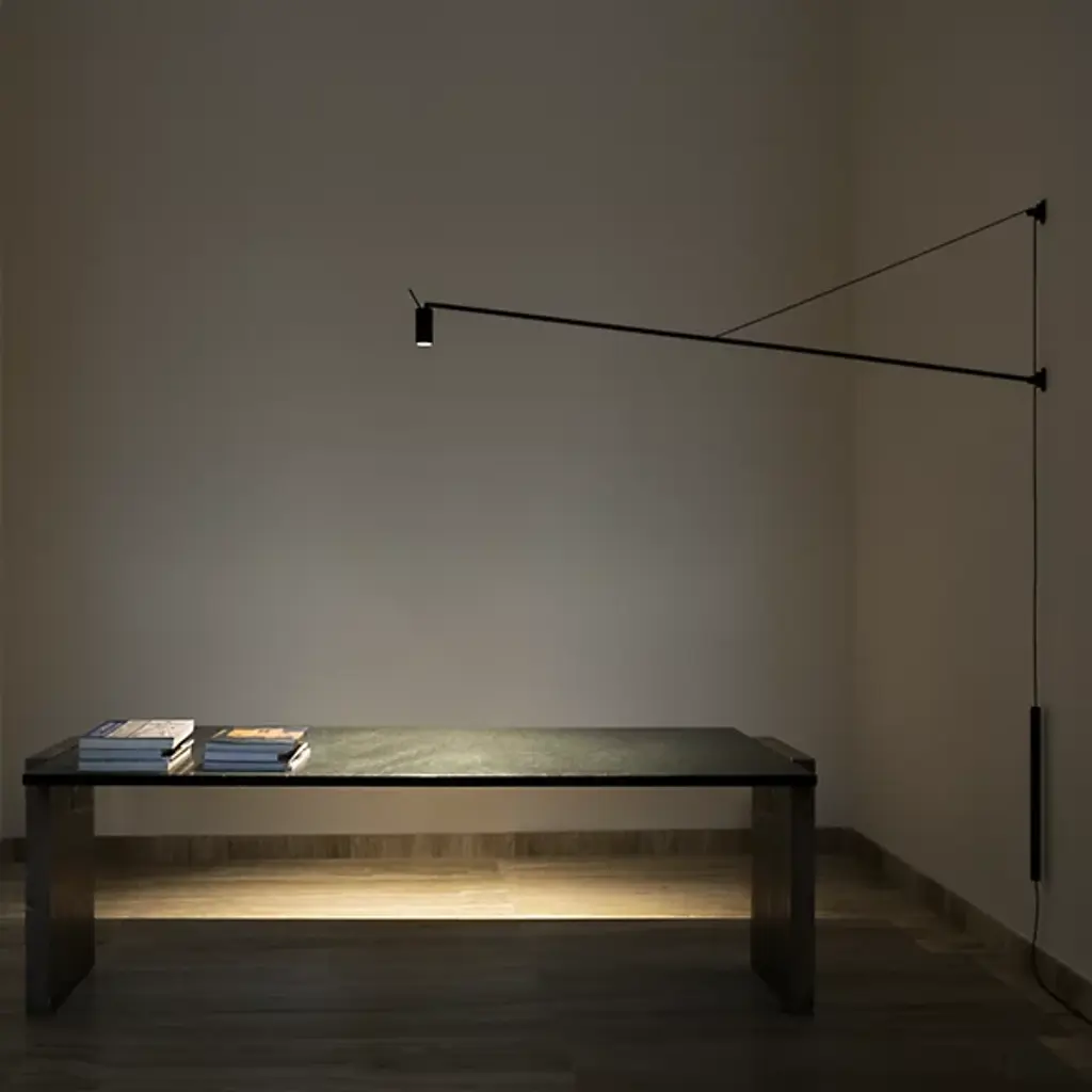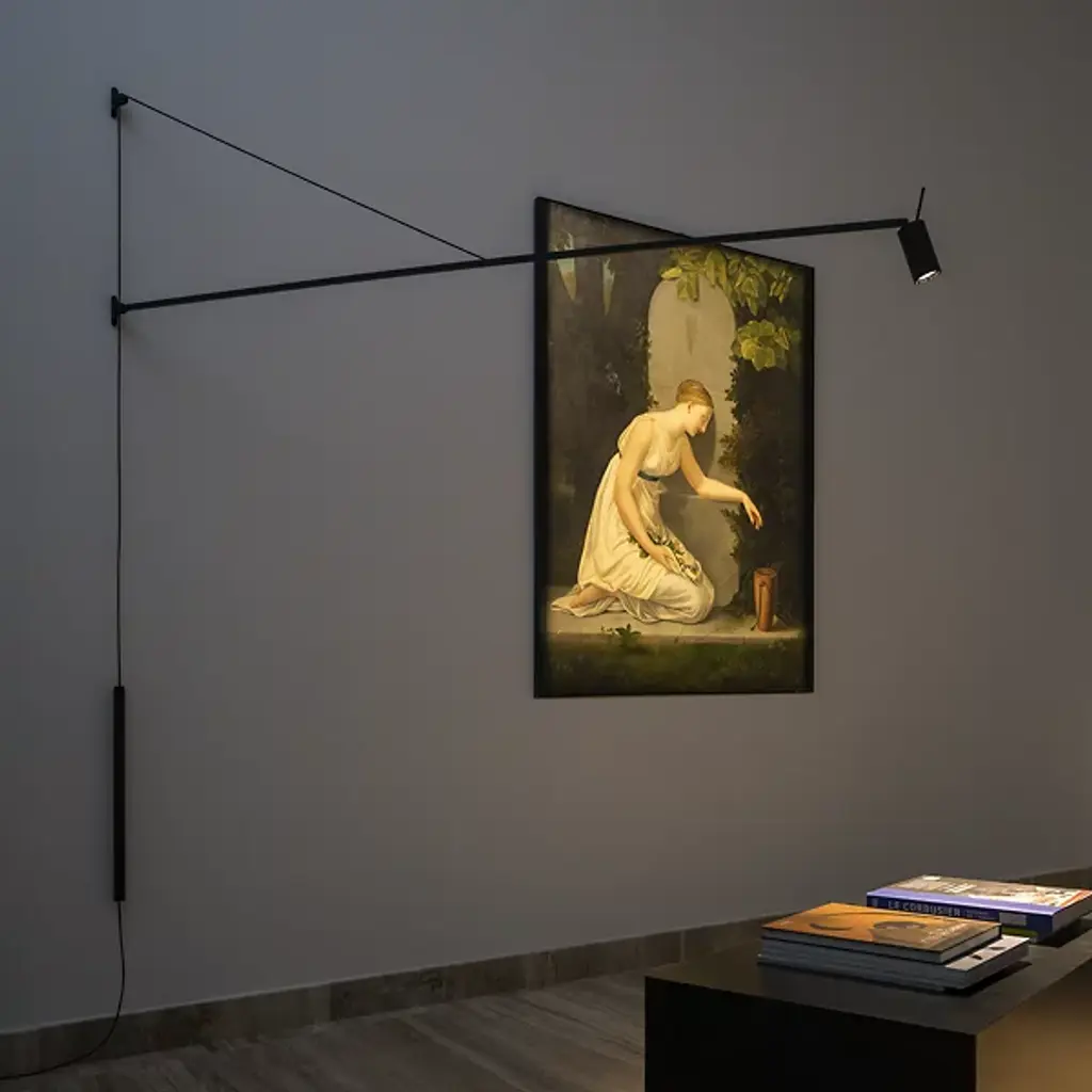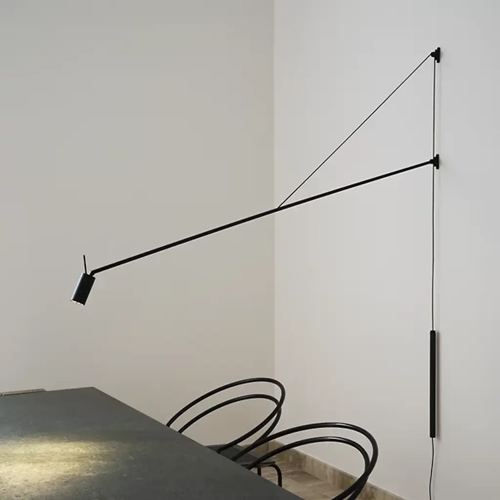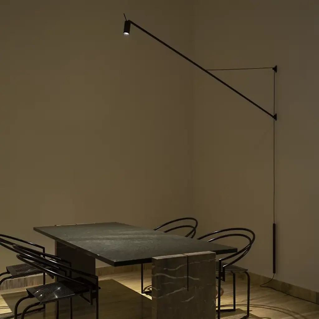 Just like its namesake, the Swan LED Wall Sconce from Nemo touches down in front of the eyes with grace, both in stillness and in motion. Coming from a designer whose work centers on dynamism, it's no wonder why creator Bernhard Osann drew inspiration from the beautiful waterfowl. Here, Osann creates a dynamic visual by using only essential shapes. A cylindrical counterbalance anchors the piece with a refined leather wrap. A fine cord passes through a pulley system and holds up a slender aluminum arm to suggest a swan's majestic silhouette. The pulley gives the arm 40° of vertical adjustability while the swivel lets the arm rotate a full 180°. Adding to the sconce's dynamic functionality, a cylindrical head perches at the end with an angle-adjustable neck. Fitted with LEDs and a glare-reducing honeycomb diffuser, the head looks over one's room to deliver an elegant task glow.