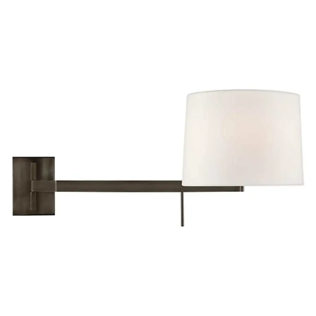 Presented by Visual Comfort Signature, formerly known as Visual Comfort, of New York, the Sweep Articulating Wall Sconce was designed by Barbara Barry. Being a creative known for her understated and minimal elegance, this piece is no exception to that fact. A linen lamp shade sits playfully on the metallic arm and affixes to the mounting plate on the wall. Light diffuses through the material of the shade and casts out of each opening. Residual illumination gleams along the fixtures. It’s a simple yet sophisticated addition to an interior.