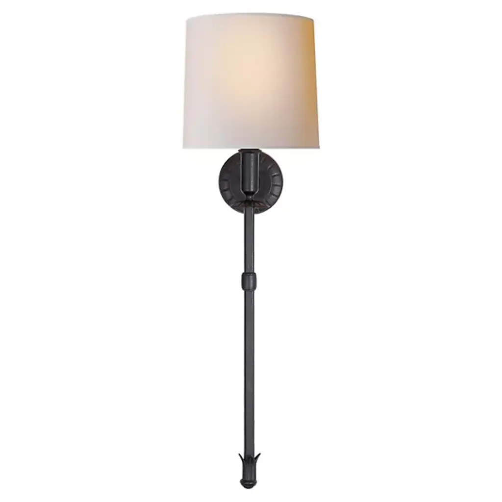 Whether you let your eye wander up to the glass or down to the tapered point of the forged and formed steel, you're in for a pleasant journey. Our Vermont metalsmiths have taken a simple wall sconce and rendered a thing of timeless beauty. Shaped in Vermont.