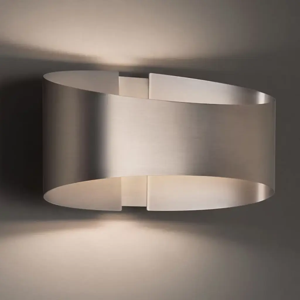 Swerve into sculptural style with the Swerve LED Wall Sconce from Modern Forms. An ovoid structure ideal on either side of a doorway or evenly spaced along a hallway, it curls out from a wall plate like a ring, and it narrows as it sweeps out and around to the other side like a ring from a jewelry box. Smooth aluminum paired with an acrylic diffuser keeps things simple, dispensing an ADA-compliant ambiance that extends warmly around the fixture.
