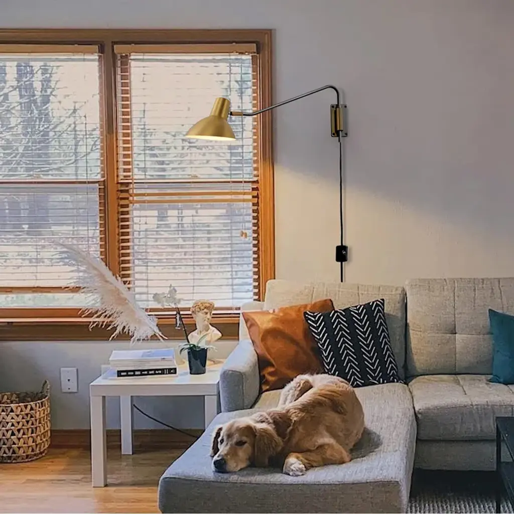 Swing Wall Light - Brushed Brass, Plug-In, Dimmer Switch