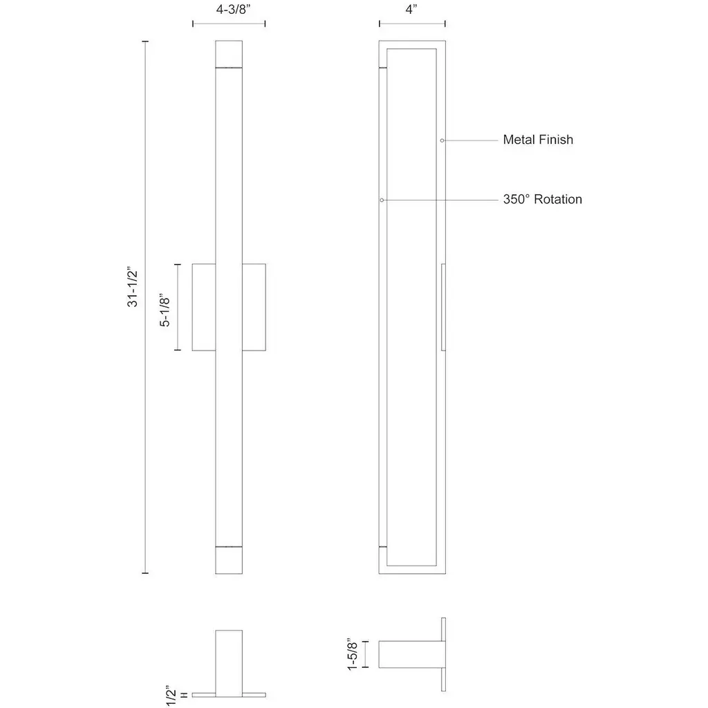 Rectangular machined aluminum heat-sink. Lightly textured powder-coat finish. Inset opal polymeric diffuser. Adjustable directional light with rotational arm. Custom options available.