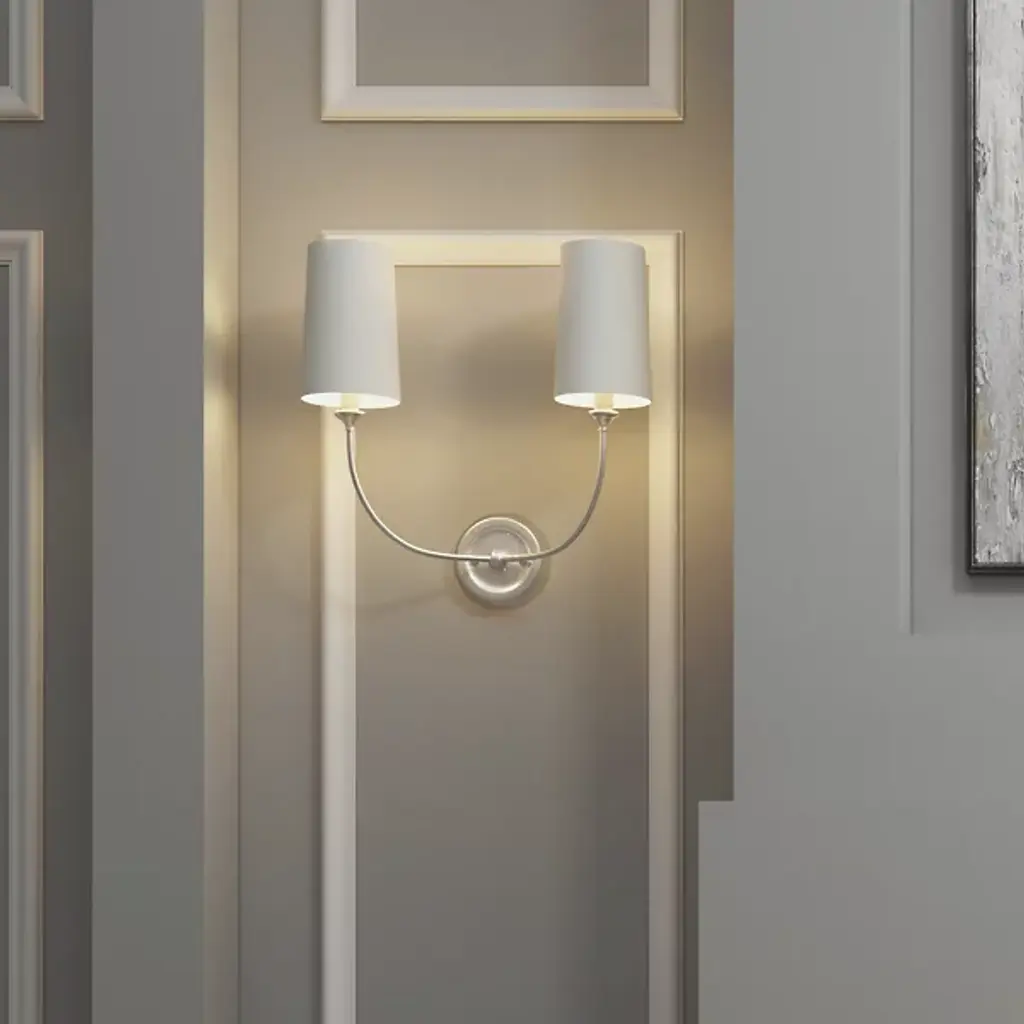 The Crystorama Sylvan 2 Light Wall Sconce from designer Libby Langdon features a single arcing rod that hosts two shades with their own light source. Projecting from a circular wall plate, the minimalist approach to the traditional wall sconce puts this piece in a whole new context. High style design is put into a more contemporary light, made with premium materials and manufacturing techniques.