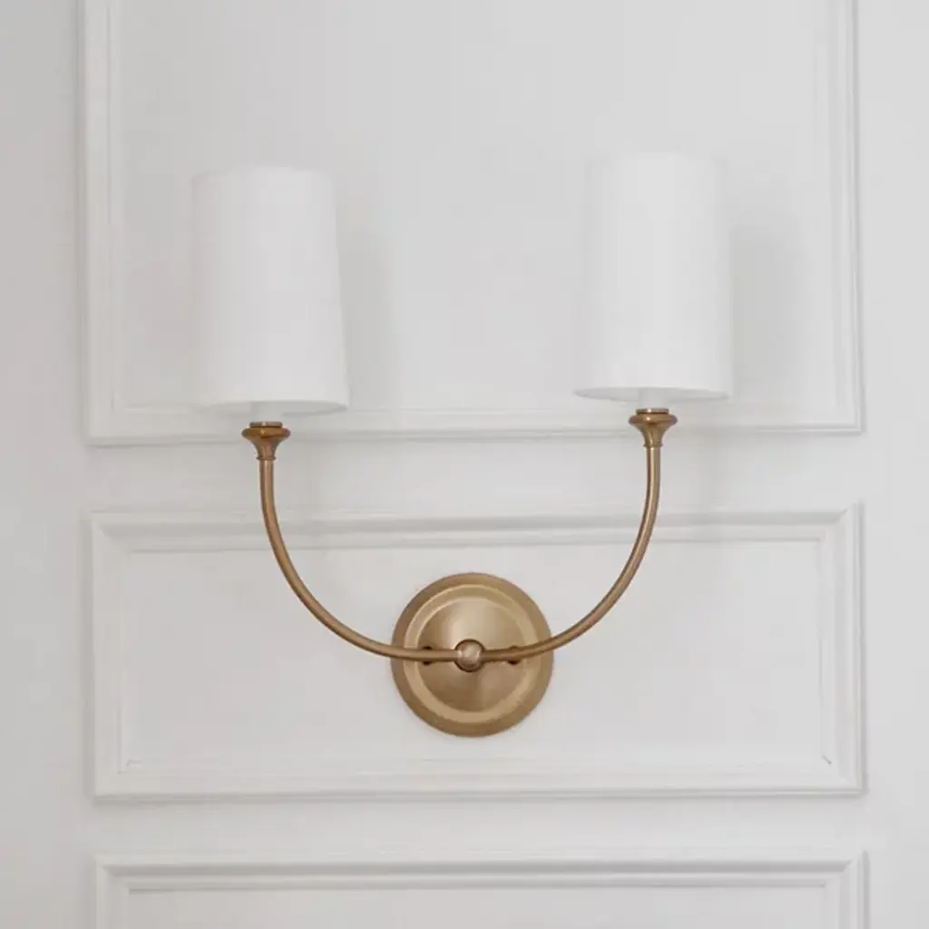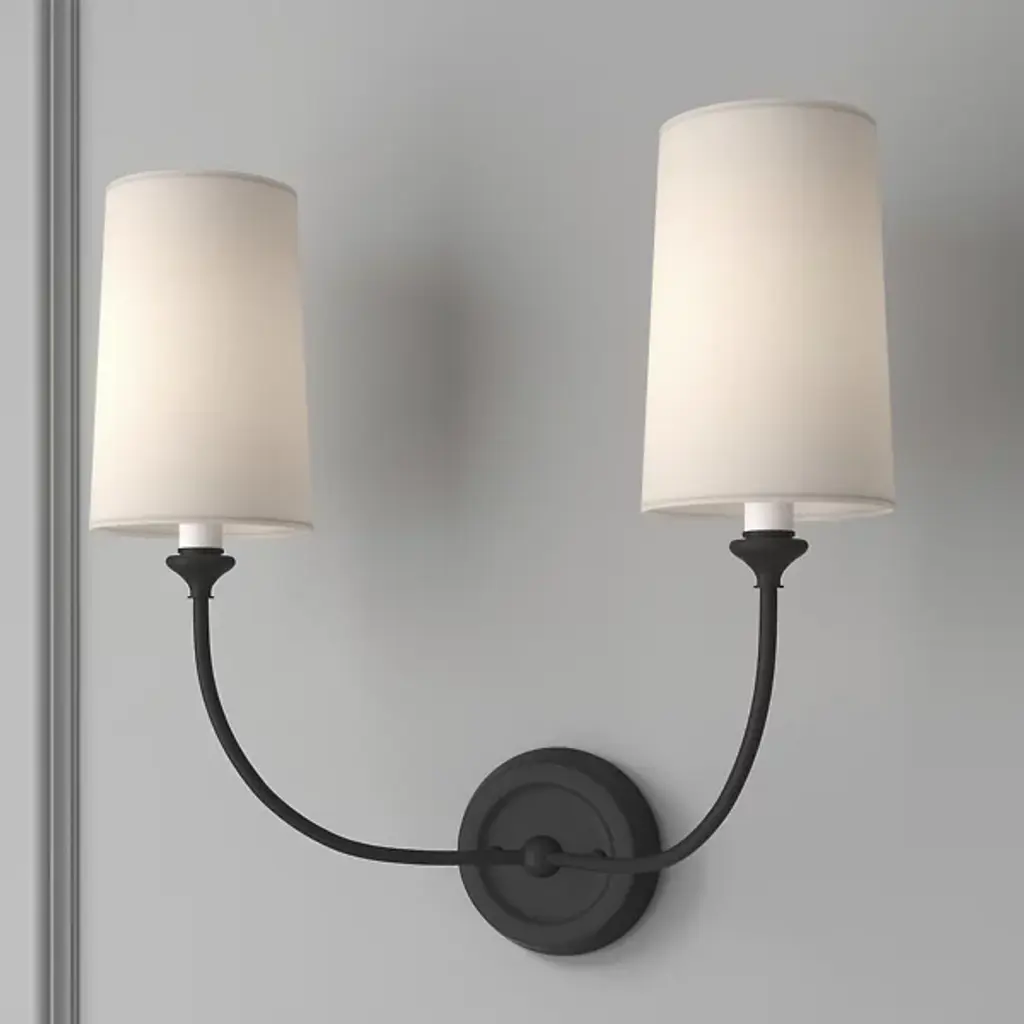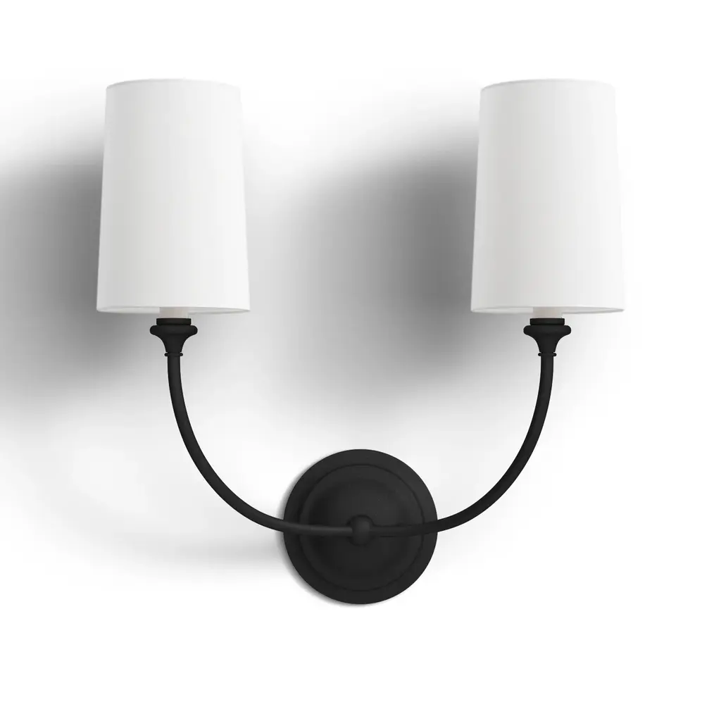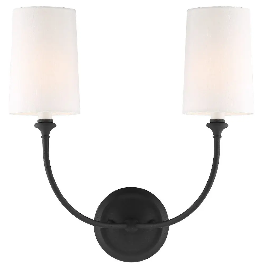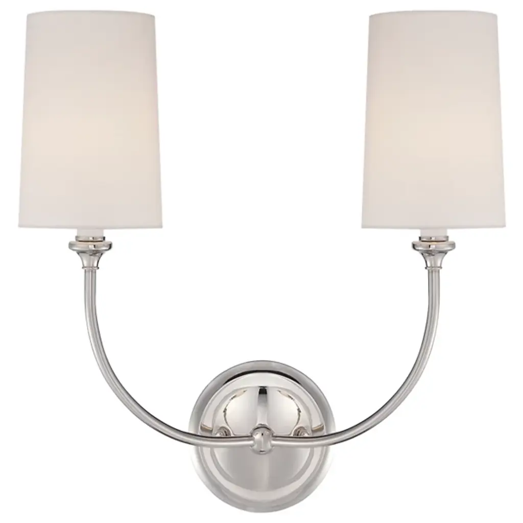 The Crystorama Sylvan 2 Light Wall Sconce from designer Libby Langdon features a single arcing rod that hosts two shades with their own light source. Projecting from a circular wall plate, the minimalist approach to the traditional wall sconce puts this piece in a whole new context. High style design is put into a more contemporary light, made with premium materials and manufacturing techniques.