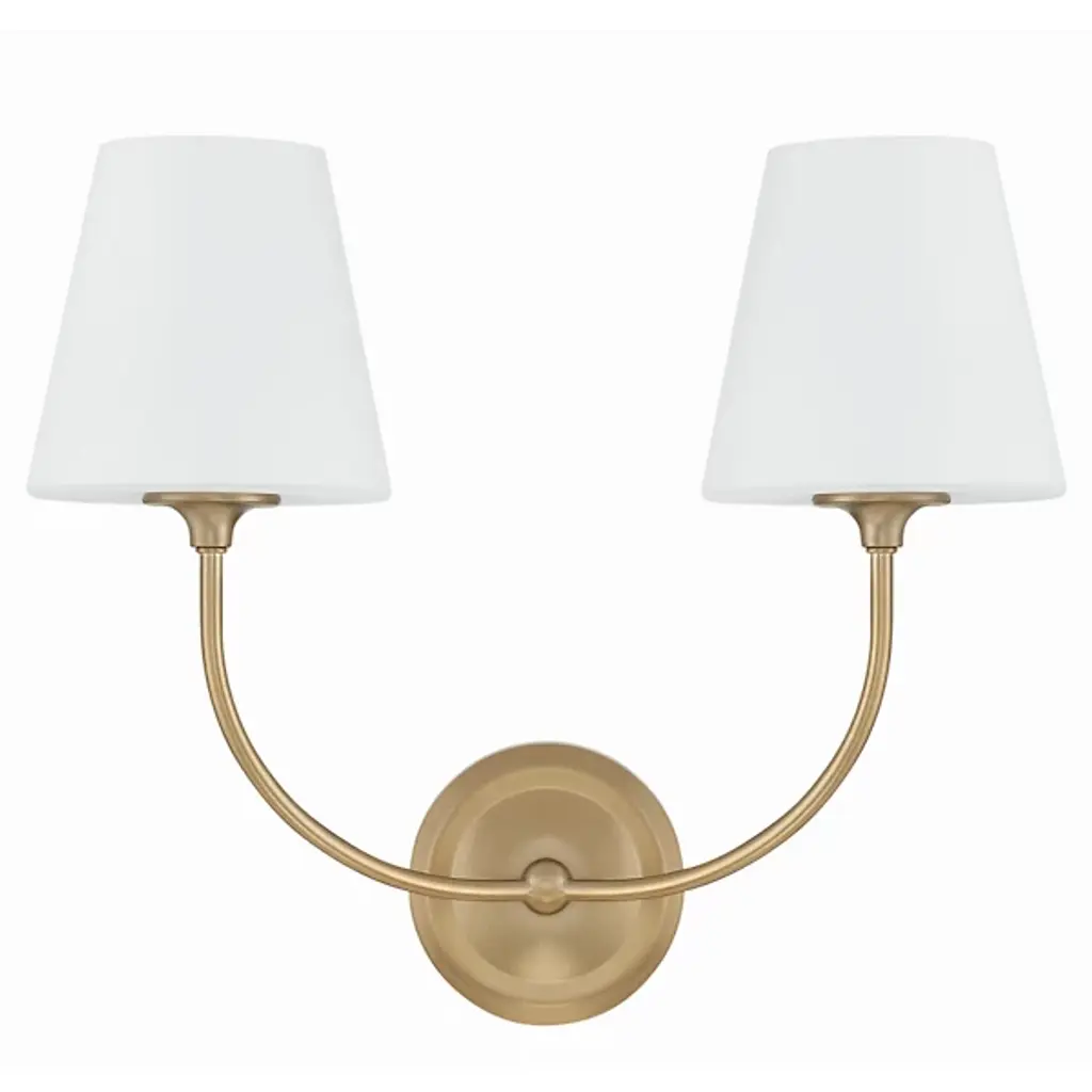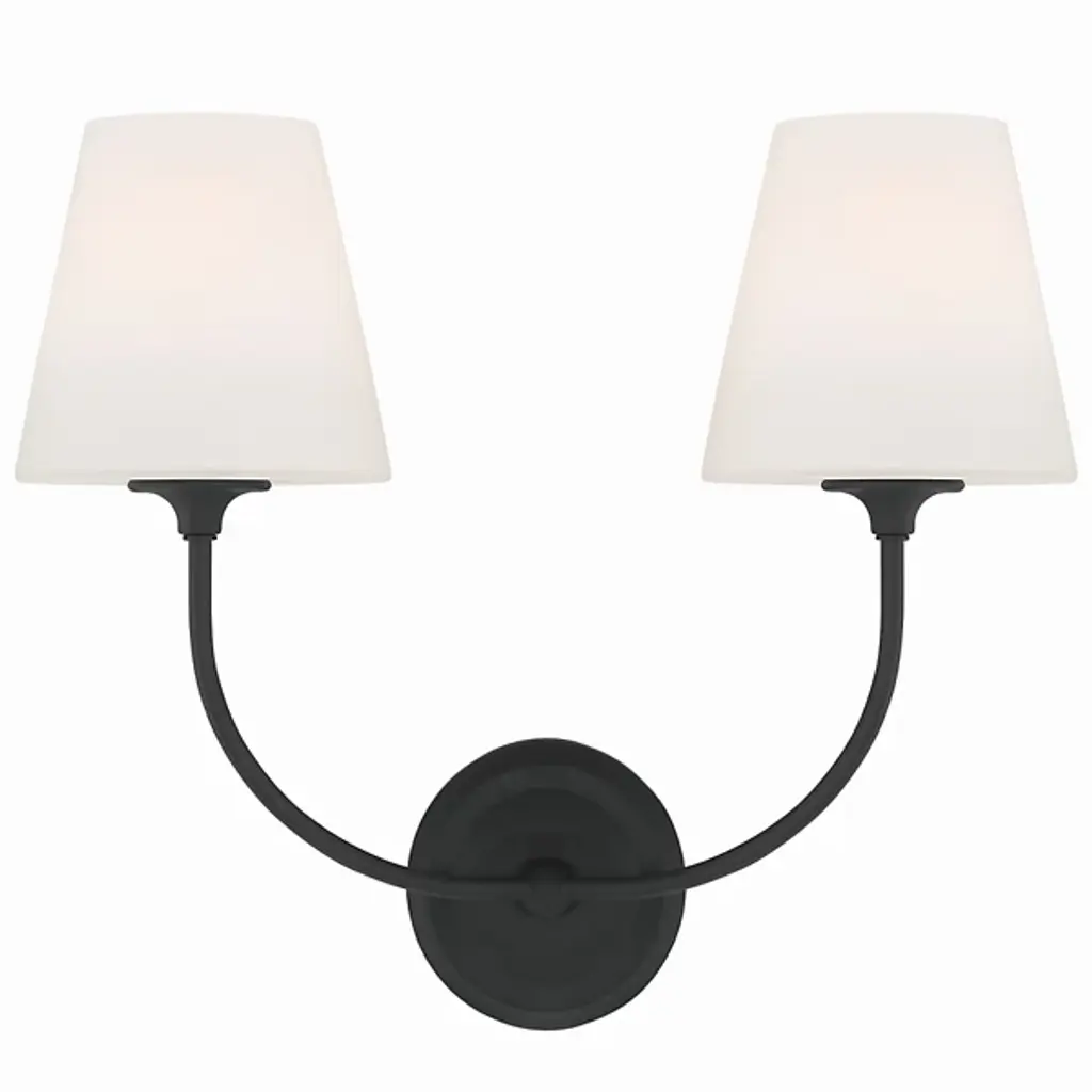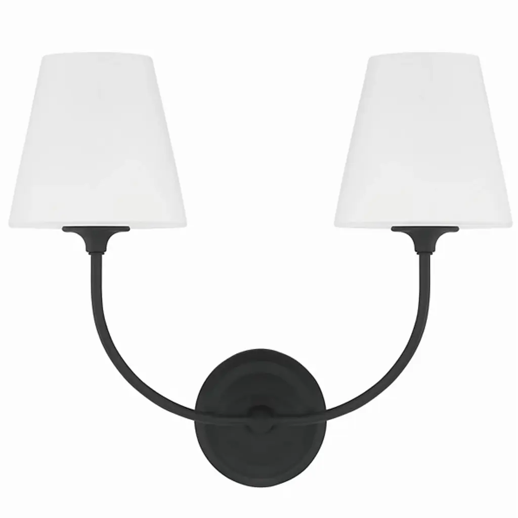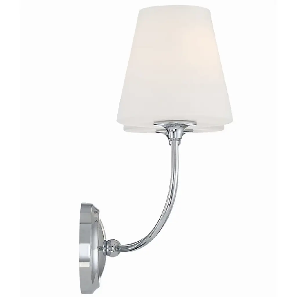 The Sylvan Glass Shade Wall Sconce from Crystorama is a captivating geometric statement that seamlessly blends Libby Langdon's classic design with a modern touch. The fixture features a shapely frame with delicate lines and precisely balanced arms, complemented by a simple glass shade, creating a clean and transitional ambiance with a contemporary flair. This wall sconce exudes luxurious appeal, infusing the bathroom space with a stylish, modern, and minimalistic essence. Elevate your decor with this exquisite fixture, harmoniously combining timeless charm with sophisticated modernity.