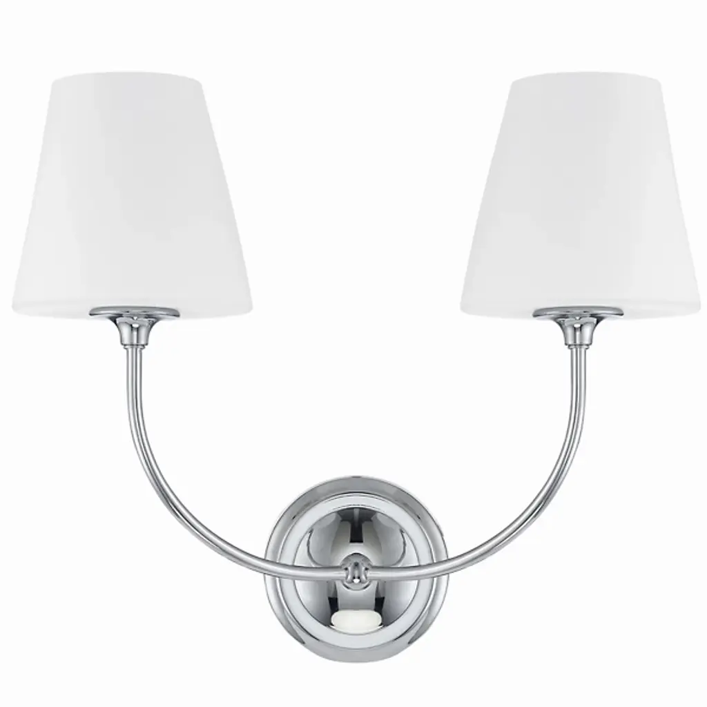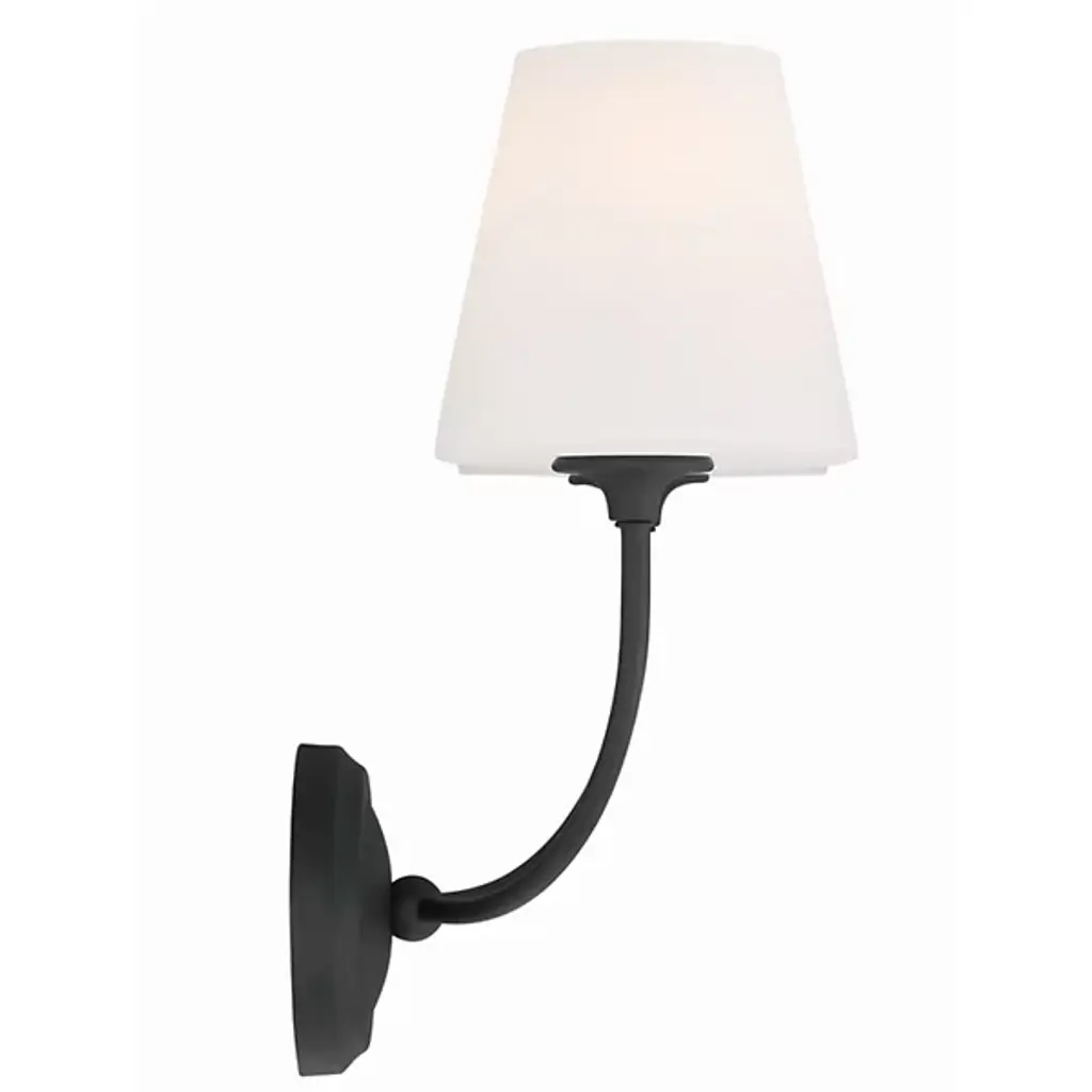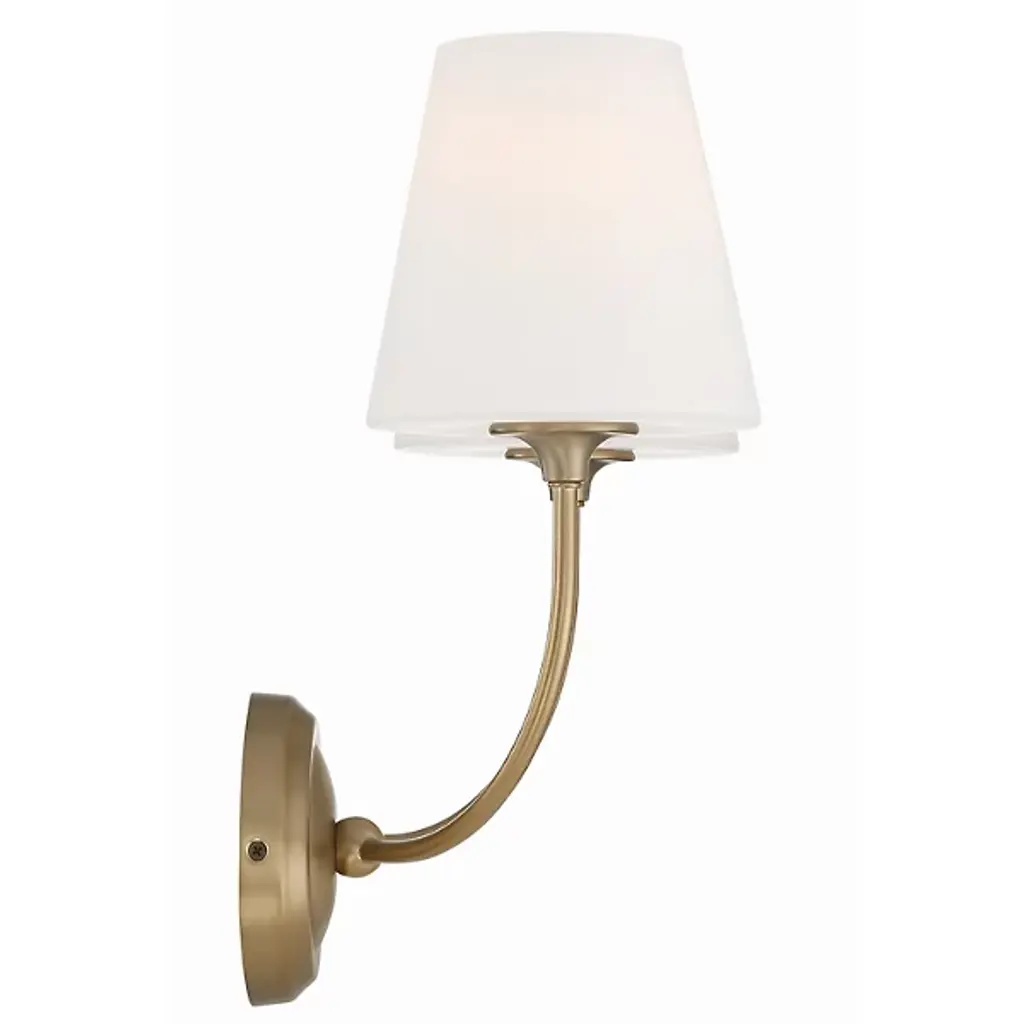 The Sylvan Glass Shade Wall Sconce from Crystorama is a captivating geometric statement that seamlessly blends Libby Langdon's classic design with a modern touch. The fixture features a shapely frame with delicate lines and precisely balanced arms, complemented by a simple glass shade, creating a clean and transitional ambiance with a contemporary flair. This wall sconce exudes luxurious appeal, infusing the bathroom space with a stylish, modern, and minimalistic essence. Elevate your decor with this exquisite fixture, harmoniously combining timeless charm with sophisticated modernity.