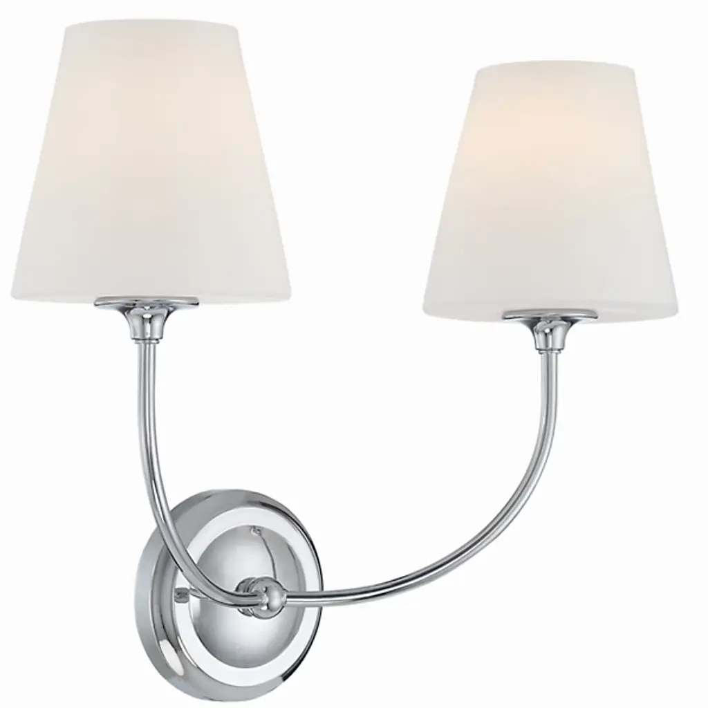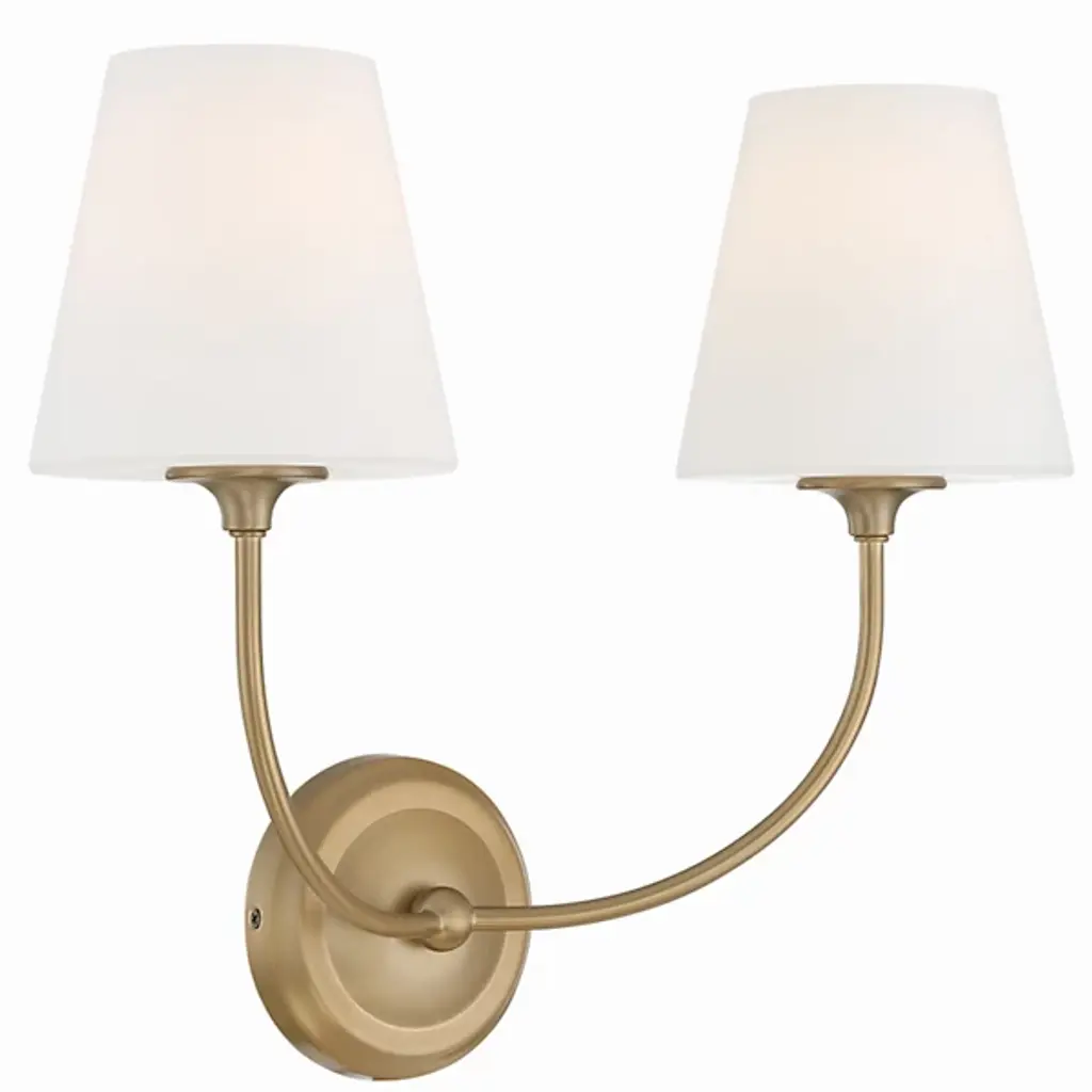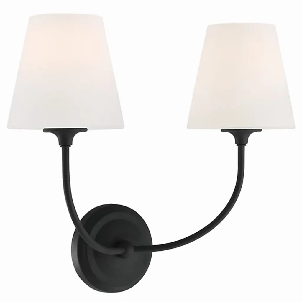 The Sylvan Glass Shade Wall Sconce from Crystorama is a captivating geometric statement that seamlessly blends Libby Langdon's classic design with a modern touch. The fixture features a shapely frame with delicate lines and precisely balanced arms, complemented by a simple glass shade, creating a clean and transitional ambiance with a contemporary flair. This wall sconce exudes luxurious appeal, infusing the bathroom space with a stylish, modern, and minimalistic essence. Elevate your decor with this exquisite fixture, harmoniously combining timeless charm with sophisticated modernity.
