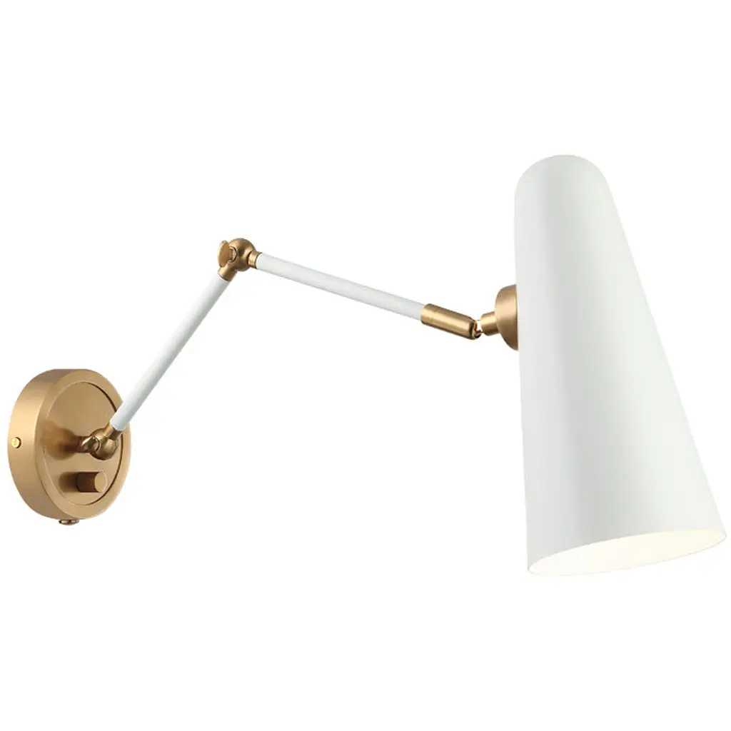 Sylvia 1 Light Wall Sconce, White, Natural Brass