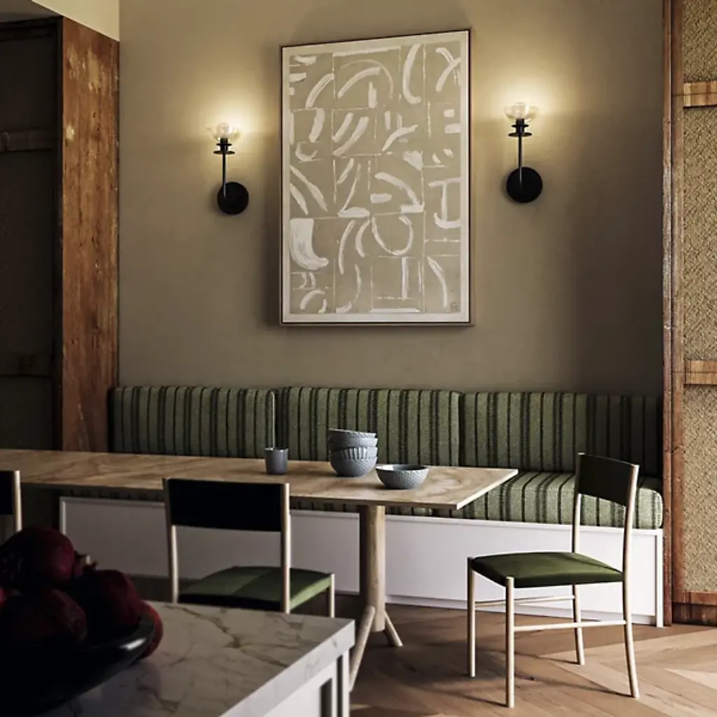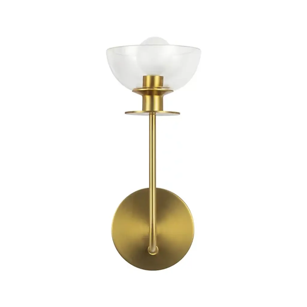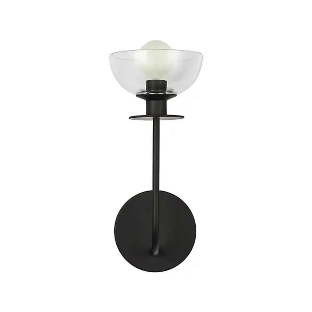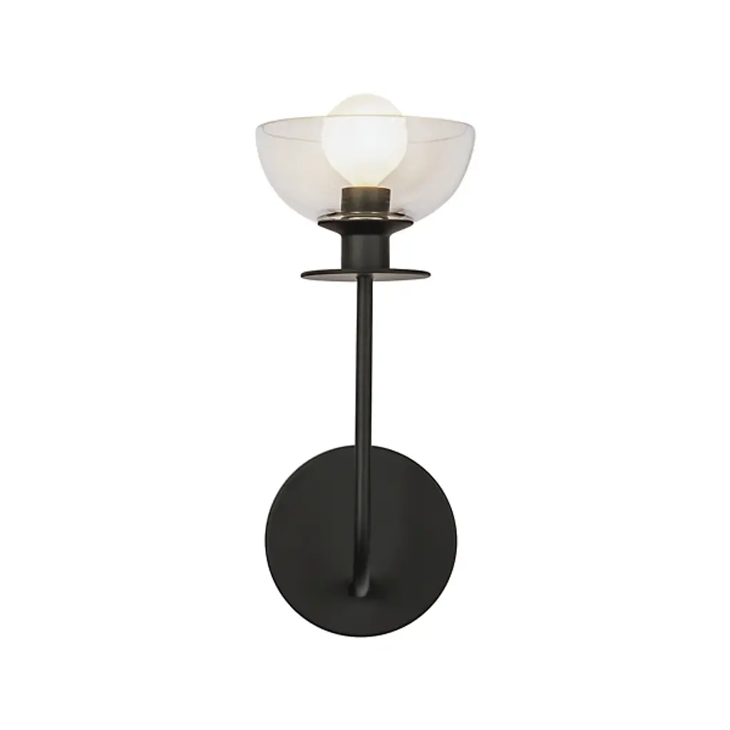 The Sylvia Wall Sconce from Alora Mood exudes transitional elegance. A plate rests at the end of a slender arm, supporting a gorgeous bowl that envelops a globe-shaped shade crafted from clear glass. The shade is illuminated by an LED, providing a warm glow. Customize the lighting intensity with a separately sold ELV dimmer. Secured by a backplate at your wall, Sylvia stays well-balanced to light up halls, entryways, and more.