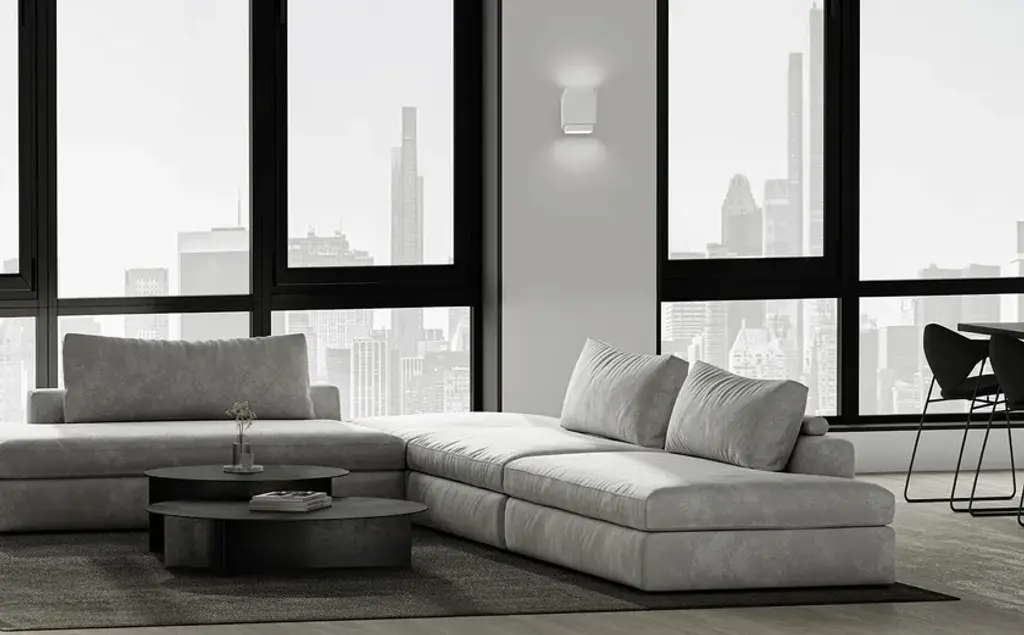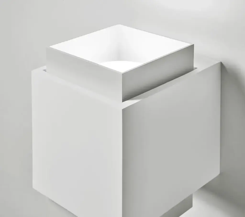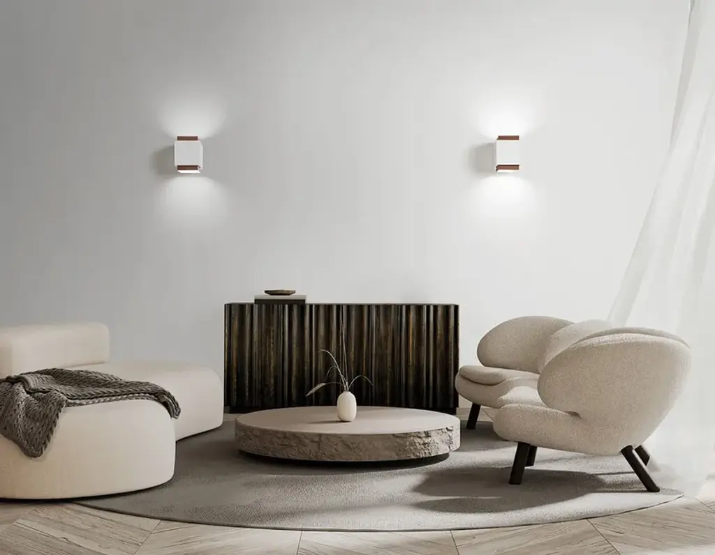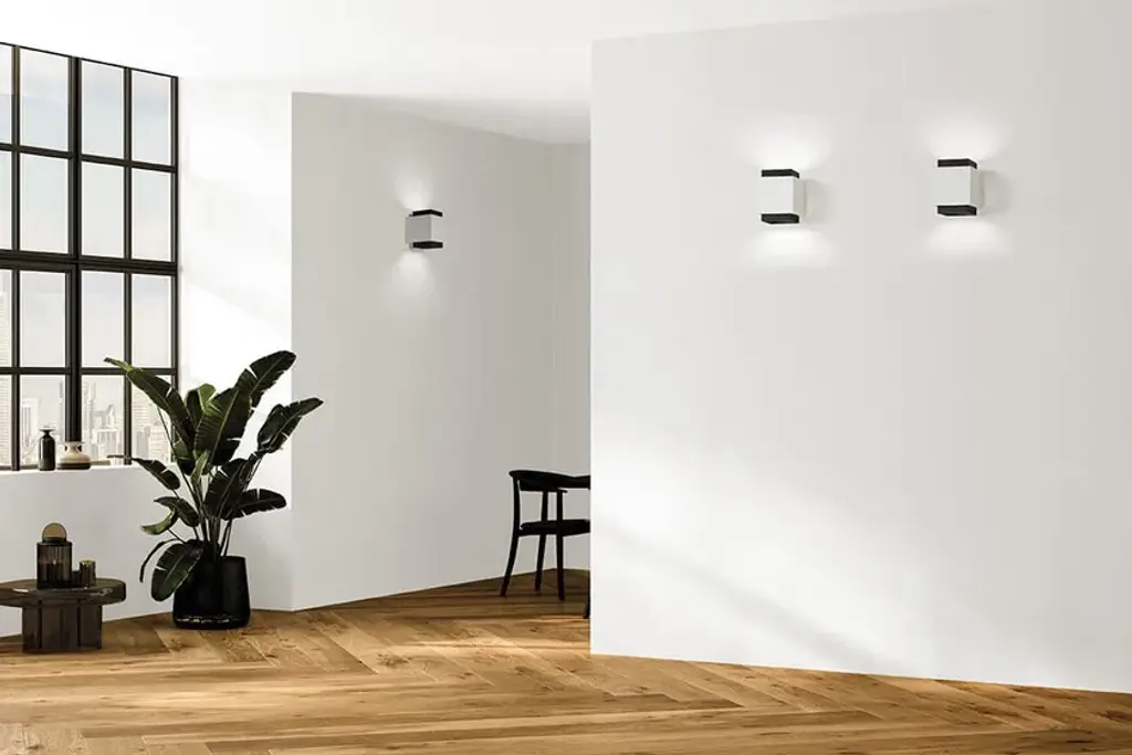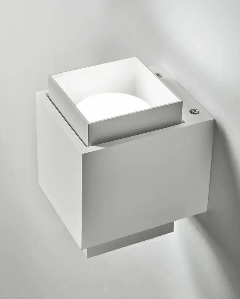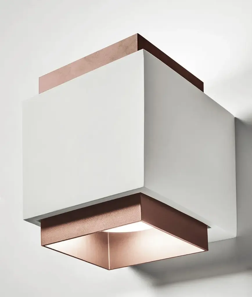Syme Quadrata is a plaster wall lamp. Painted aluminum element available in black, bronze, white, brass or copper. Equipped with GX53 lamp holder.
