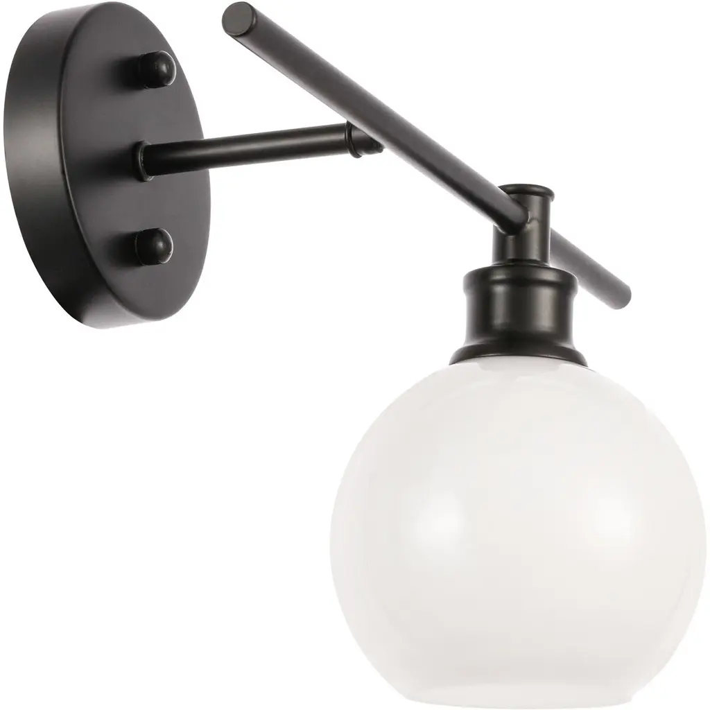 The Syracuse Collection of lights will be sure to have your guests admire your modern sense of style with the beautiful simplicity of its shape and form. While this wall lamp is versatile and can be oriented with the light facing up or down, its modern style will remain a constant, and its illumination will always brighten any home. Available in a brass, chrome, or black finish with either a clear or frosted ball glass shade, it is the perfect wall lamp to enhance your bathroom, foyer, or hallways, allowing you to always live in a chic and fashionable lifestyle (light bulbs not included). Also available in either left facing or right facing configuration.