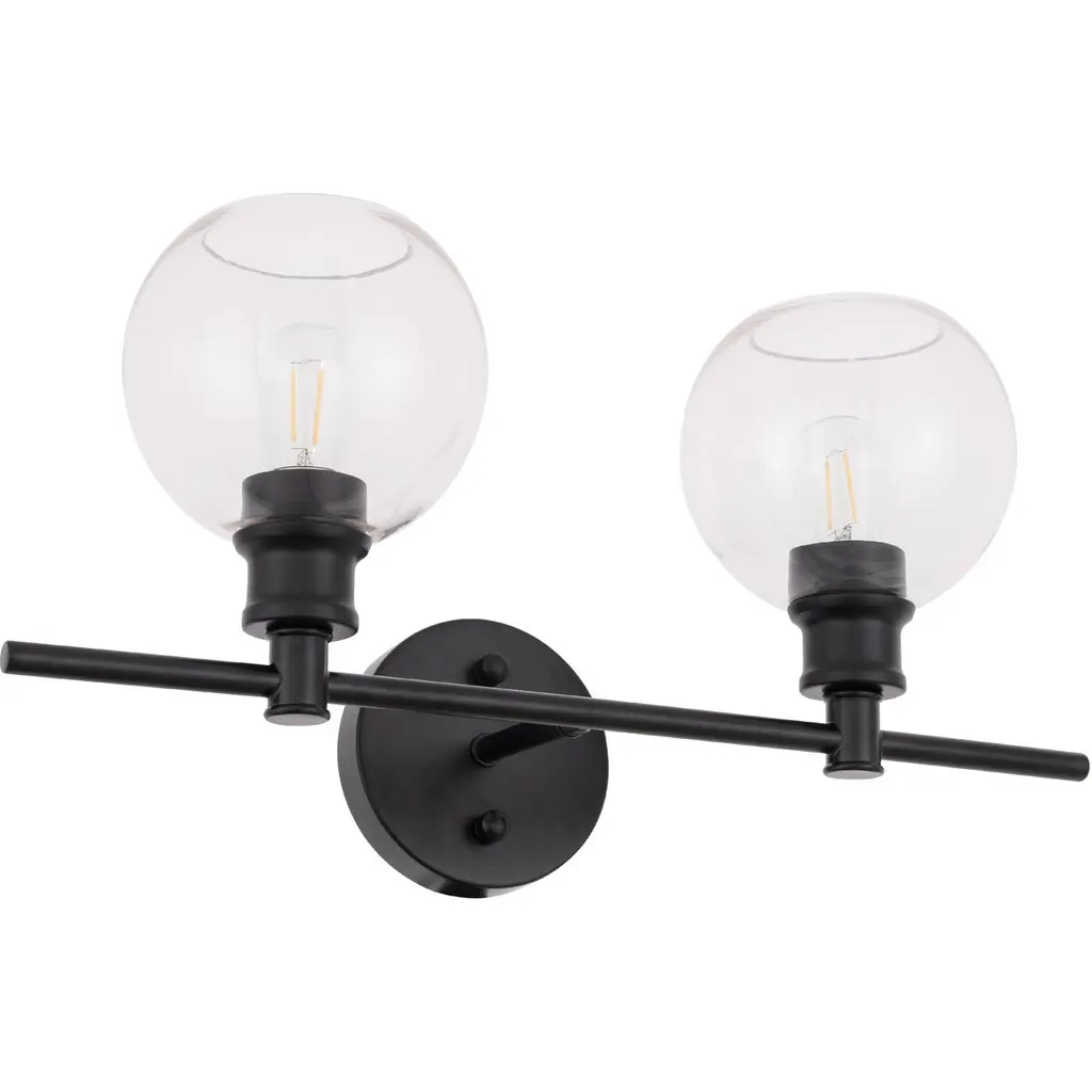 The Syracuse Collection of lights will be sure to have your guests admire your modern sense of style with the beautiful simplicity of its shape and form. The clean lines of the ball shaped shades create the juxtaposition of intricate simplicity, achieving a style that has both form and function. This wall lamp can be oriented facing up or down, but will always illuminate your room. Available in a brass, chrome, or black finish with either a clear or frosted ball glass shade, it is the perfect wall lamp to enhance your bathroom, foyer, or hallways, allowing you to always live a chic and fashionable lifestyle (light bulbs not included).
