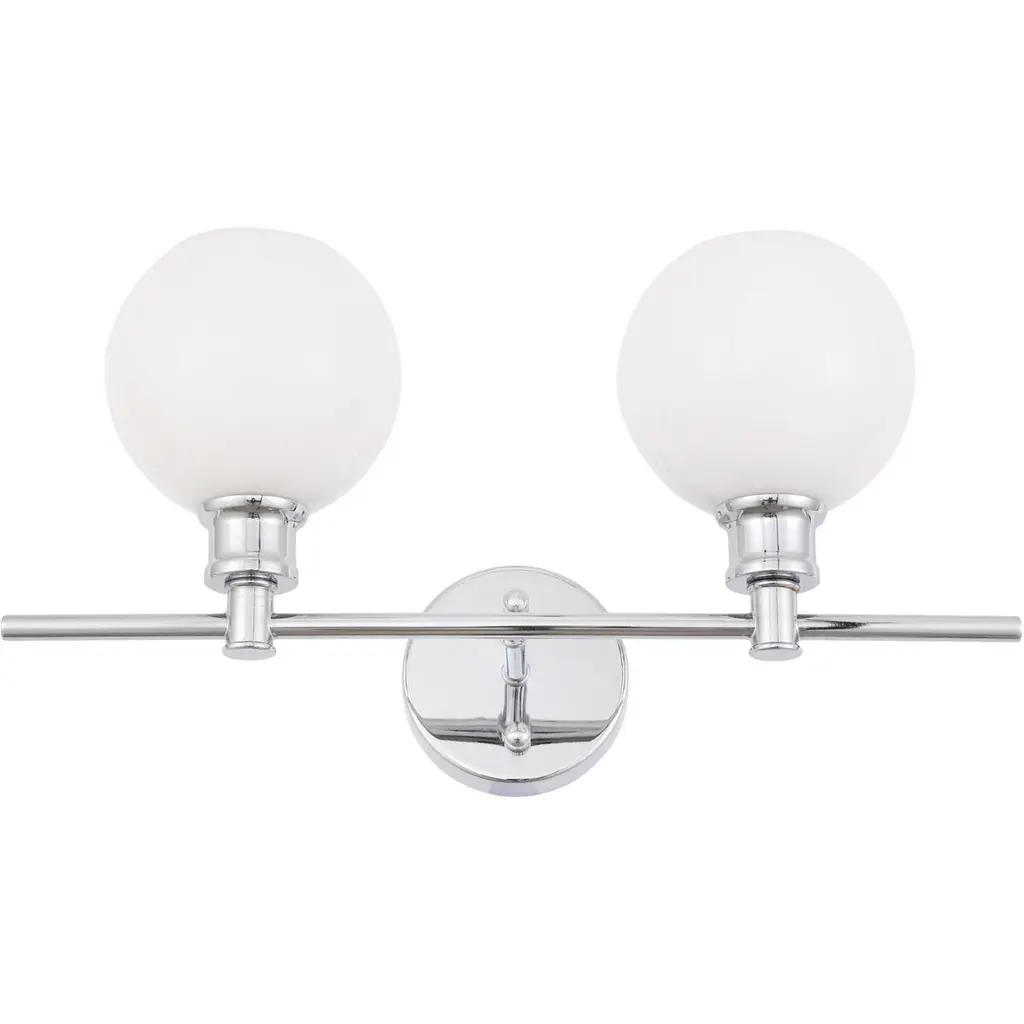 The Syracuse Collection of lights will be sure to have your guests admire your modern sense of style with the beautiful simplicity of its shape and form. The clean lines of the ball shaped shades create the juxtaposition of intricate simplicity, achieving a style that has both form and function. This wall lamp can be oriented facing up or down, but will always illuminate your room. Available in a brass, chrome, or black finish with either a clear or frosted ball glass shade, it is the perfect wall lamp to enhance your bathroom, foyer, or hallways, allowing you to always live a chic and fashionable lifestyle (light bulbs not included).