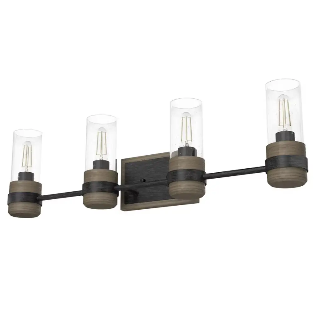Tacoma Bath Bar Matte Black & Painted Distressed Wood-Look 5.75" Clear Bubble