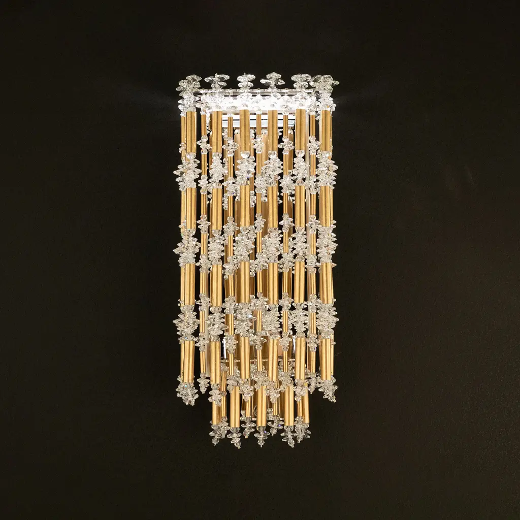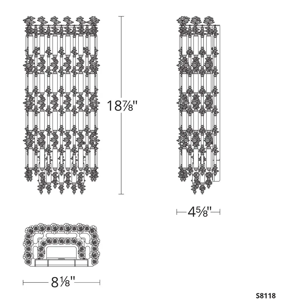 Filled with layers of radiant crystal, Tahitian is inspired by the Zen of dense bamboo forests. Seemingly infinite facets create a scintillating play of light from integrated, color temperature adjustable LEDs in 3000K, 3500K and 4000K. Constructed of steel featuring Schonbek Clear Optic Crystal, an optically pure faceted crystal with no flaws or imperfections. Feature a 3-CCT color temperature selectable switch that can be accessed at any time to toggle between 3000K-3500K-4000K color temperatures. This wall sconce luminaire pairs perfectly with the Bali and Tahitian pendant collections.