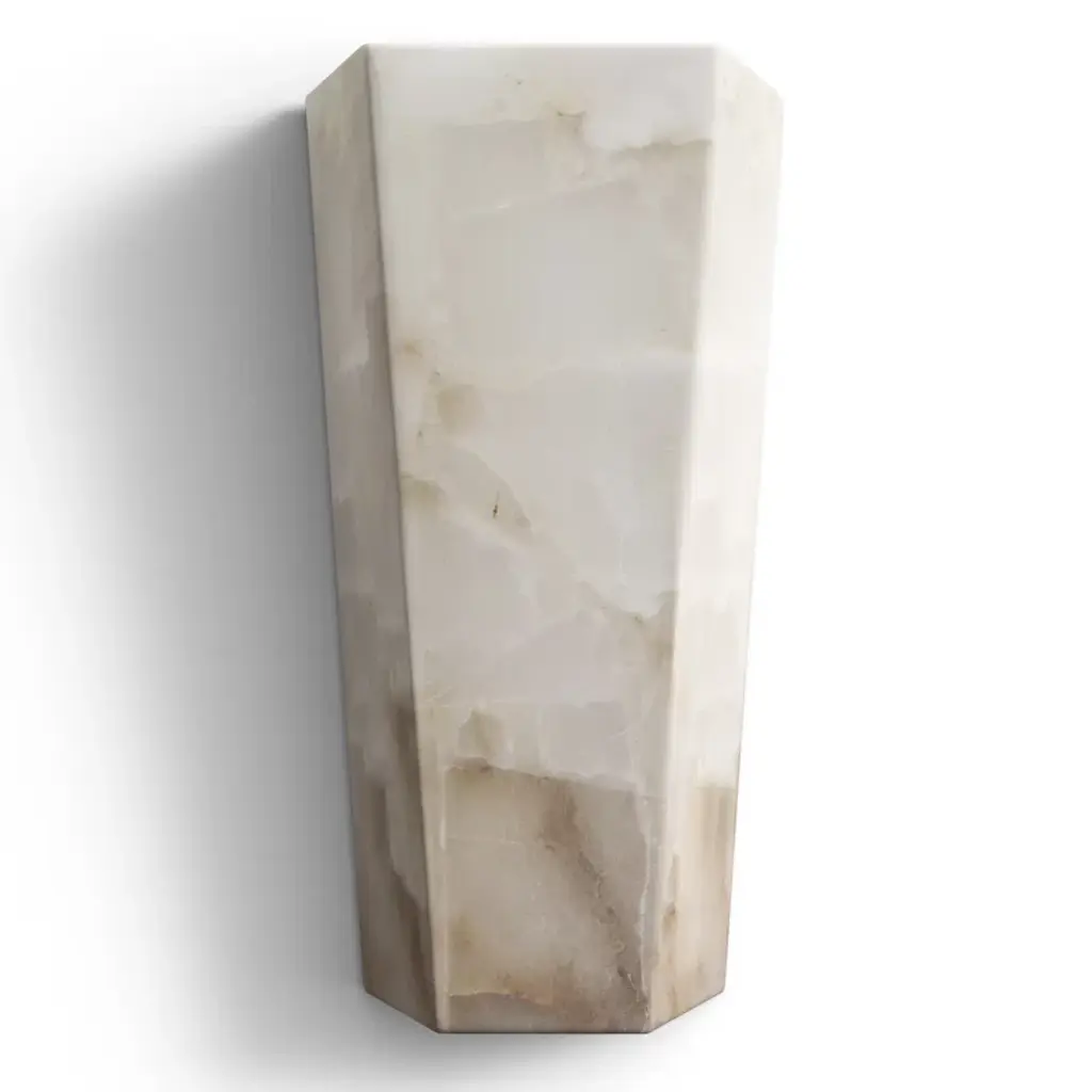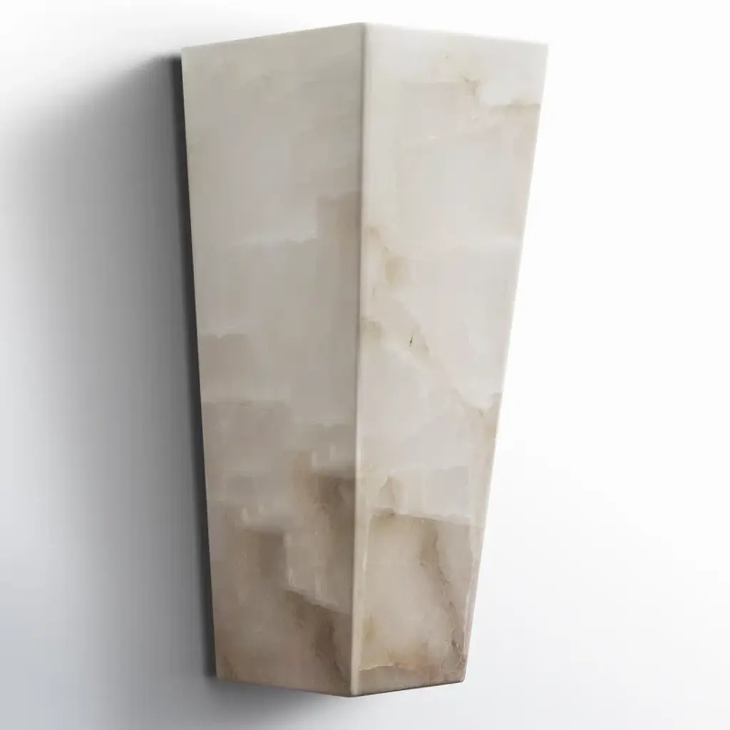 Light up the room. This flush-mounted wall sconce brings a warm glow to your living room or hallway. Crafted from stainless steel, it features a marble-like alabaster shade that diffuses light in an upward direction, creating a soothing atmosphere. Plus, the geometric shape of the shade adds a dash of character. This sconce is hardwired and includes a switch for easy operation.
