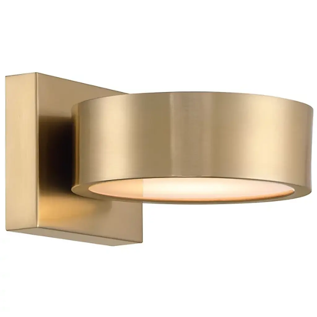 The Talamanca LED Wall Sconce from Savoy House showcases a smooth contemporary style with its refined design. This sconce is part of the Moderne collection by renowned designer Breegan Jane, which features her signature blend of approachable luxury and timeless elegance. The chic round structure, finished in champagne-toned Noble Brass, integrates a crisp LED light source within a crushed crystal diffuser mounted on a square backplate. Its clean, sophisticated look adds refined, energy-efficient illumination to any space.