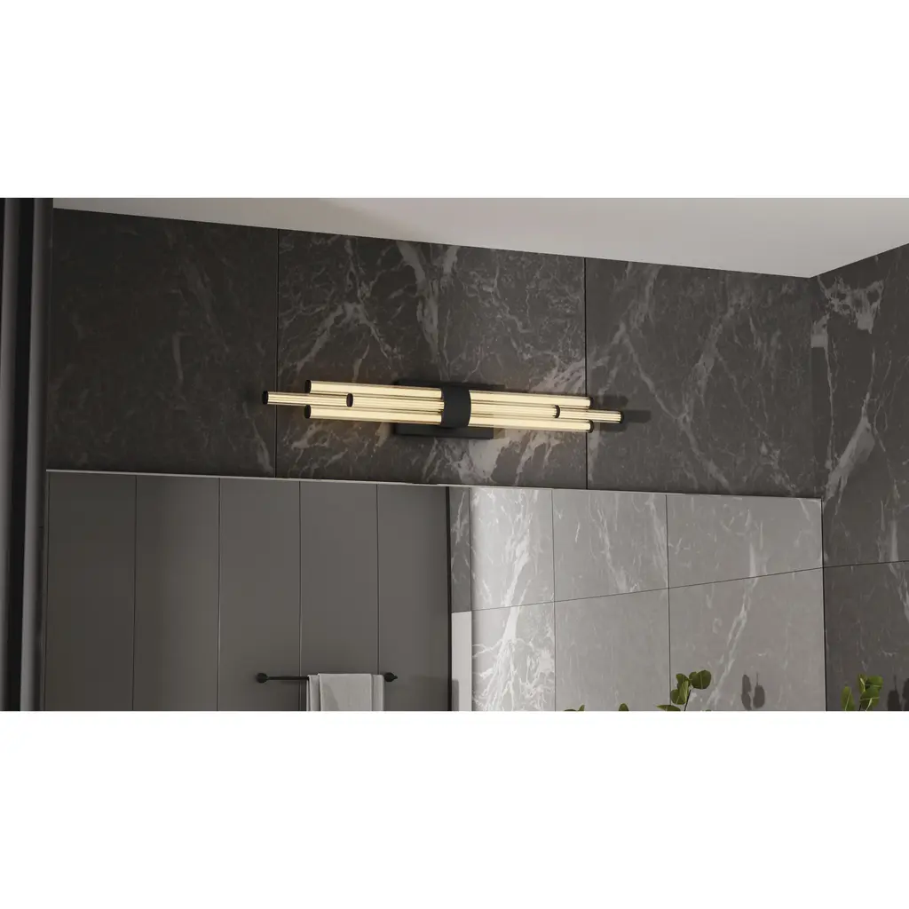 The Talbott bath light features a striking modern design with a sleek, minimalist aesthetic. The rectangular backplate contrasts with the series of parallel cylindrical acrylic rods, creating a unique and eye-catching visual. Each rod houses an integrated LED light for maximum light output and energy efficiency. Talbott is available in matte black, brushed gold, and polished chrome to suit various bathroom vanity styles. This fixture also includes a CCT switch, allowing you to easily customize the brightness of the light to your desired setting.