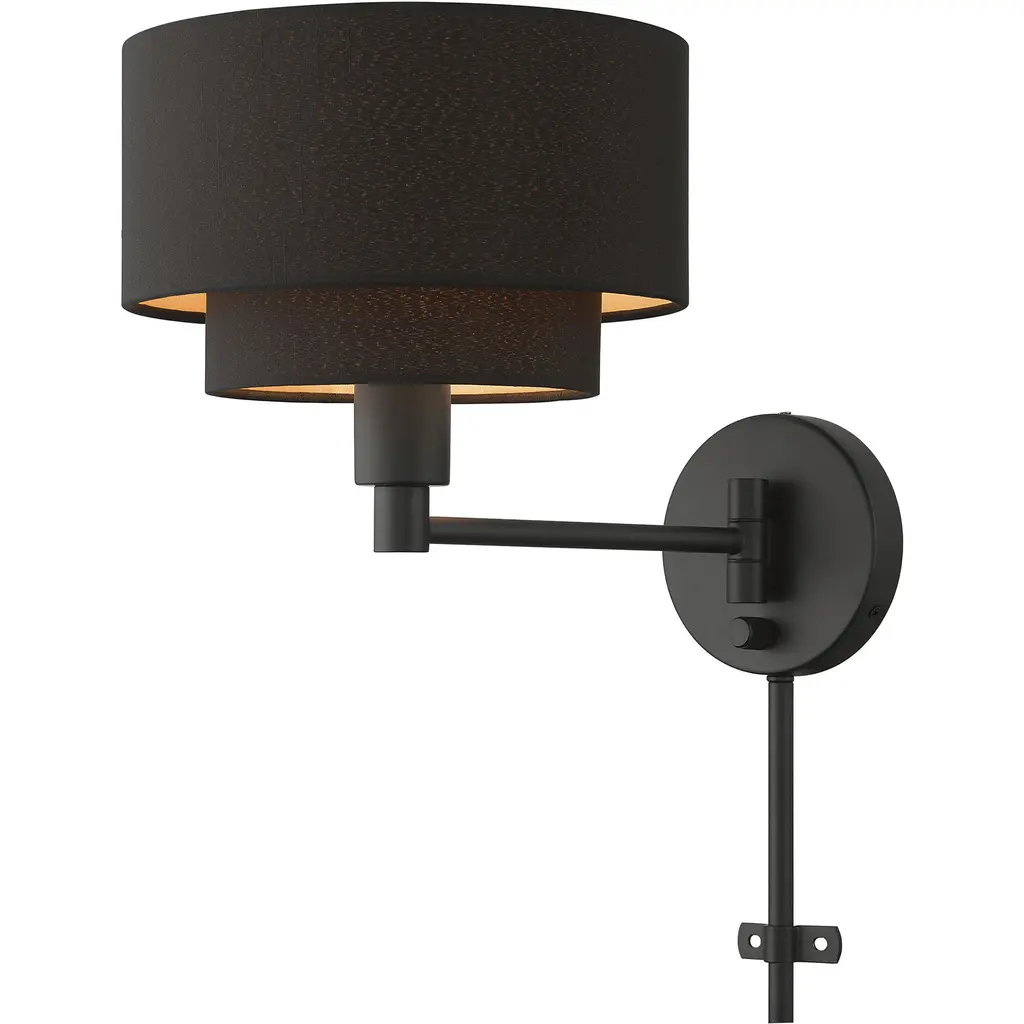 Talea 1-Light Articulate Wall Sconce, Dark Walnut/burlap Shade, Textured Black Backplate